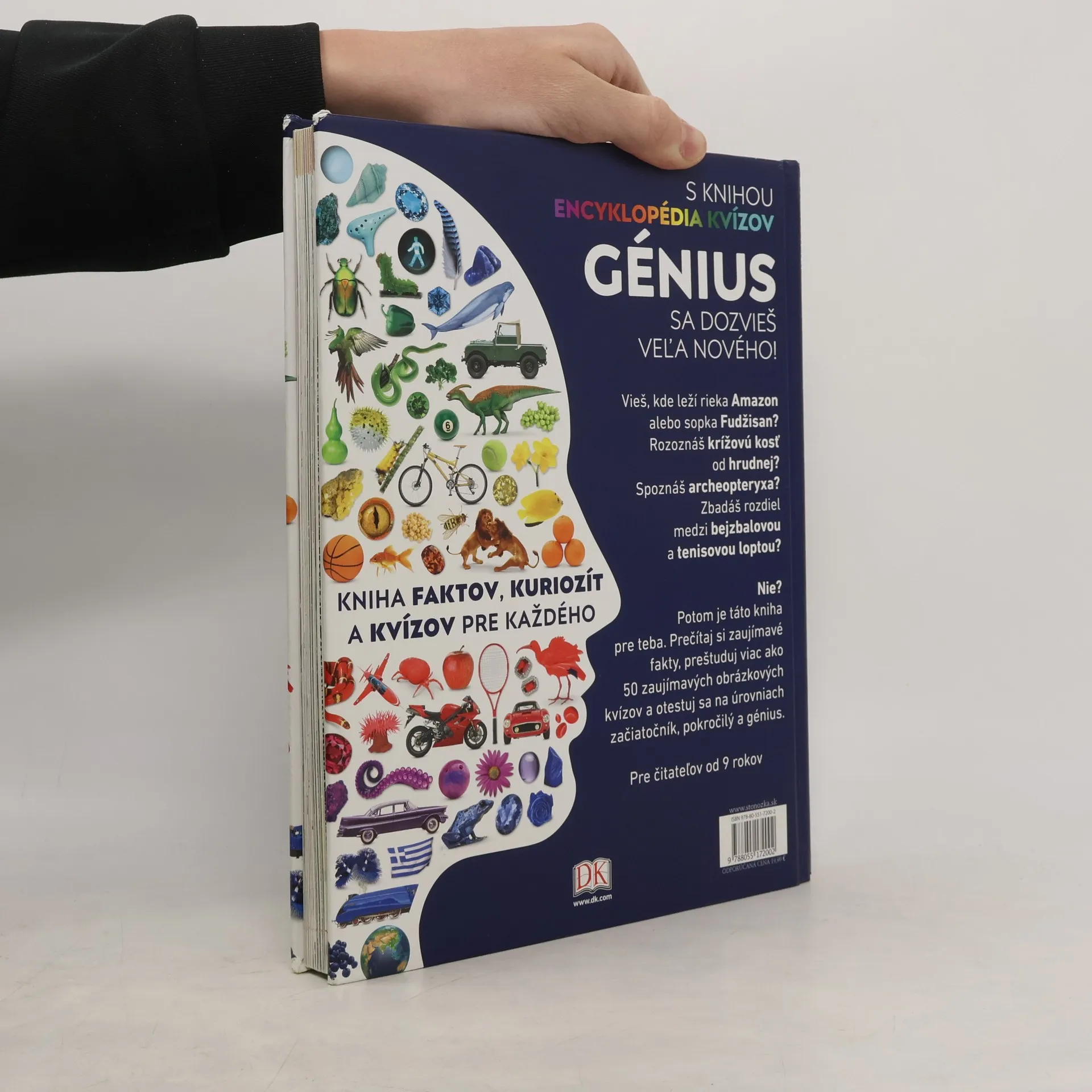 S KNIHOU ENCYKLOPÉDIA KVÍZOV GÉNIUS SA DOZVIEŠ VEĽA NOVÉHO!Vieš, kde leží rieka Amazon alebo sopka Fudžisan? Rozoznáš krížovú kosť od hrudnej? Spoznáš archeopteryxa? Zbadáš rozdiel medzi bejzbalovou a tenisovou loptou?Nie? Potom je táto kniha pre teba. Prečítaj si zaujímavé fakty, preštuduj viac ako 50 zaujímavých obrázkových kvízov a otestuj sa na úrovniach začiatočník, pokročilý a génius.Pre čitateľov od 9 rokovZ anglického originálu General Knowledge Genius! (Dorling Kindersley Limited, London 2018) preložili Mariana Hyžná a Matúš Hyžný.