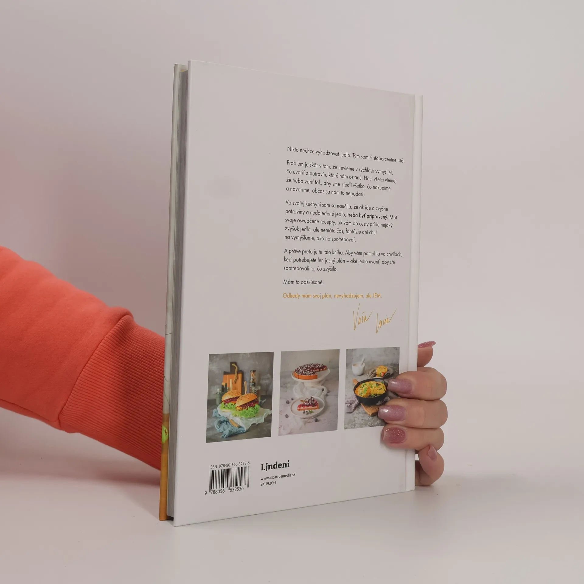 Vitajte v kuchyni, v ktorej sa jedlo nevyhadzujeNikto nechce vyhadzovať jedlo. Tým som si stopercentne istá. Problém je skôr v tom, že nevieme v rýchlosti vymyslieť, čo uvariť z potravín, ktoré nám ostanú. Hoci všetci vieme, že treba variť tak, aby sme zjedli všetko, čo nakúpime a navaríme, občas sa nám to nepodarí. Vo svojej kuchyni som sa naučila, že ak ide o zvyšné potraviny a nedojedené jedlo, treba byť pripravený. Mať svoje osvedčené recepty, ak vám do cesty príde nejaký zvyšok jedla, ale nemáte čas, fantáziu ani chuť na vymýšľanie, ako ich spotrebovať. A práve preto je tu táto kniha. Aby vám pomohla vo chvíľach, keď potrebujete len jasný plán – aké jedlo uvaríte a z akých surovín, aby ste spotrebovali to, čo zvýšilo. Mám to odskúšané. Odkedy mám svoj plán, nevyhadzujem, ale JEM.