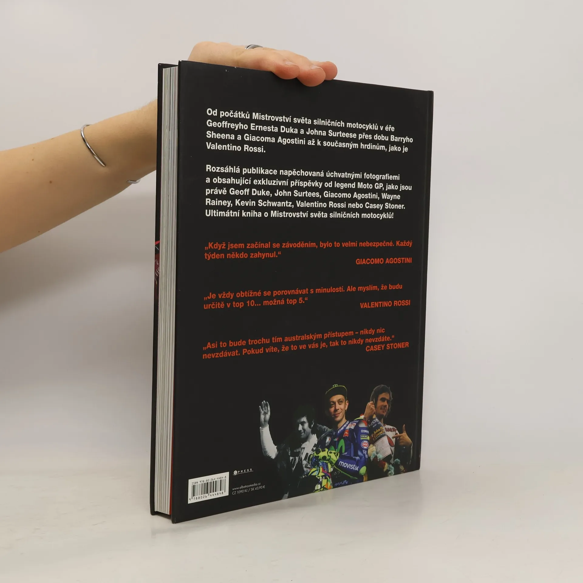 Vzrušující podívaná na divoké dějiny nejrychlejšího sportu na dvou kolech! Sledujte vývoj MotoGP dekádu za dekádou. Závodní tratě, zásadní události, jezdci, jejich výkony a neuvěřitelné stroje, jimiž ovládli okruhy i srdce milionů fanoušků napříč světem. Kniha je plná fotografií a postřehů největších osobností motocyklového světa a představuje tak dokonalou oslavu tohoto prestižního sportu.