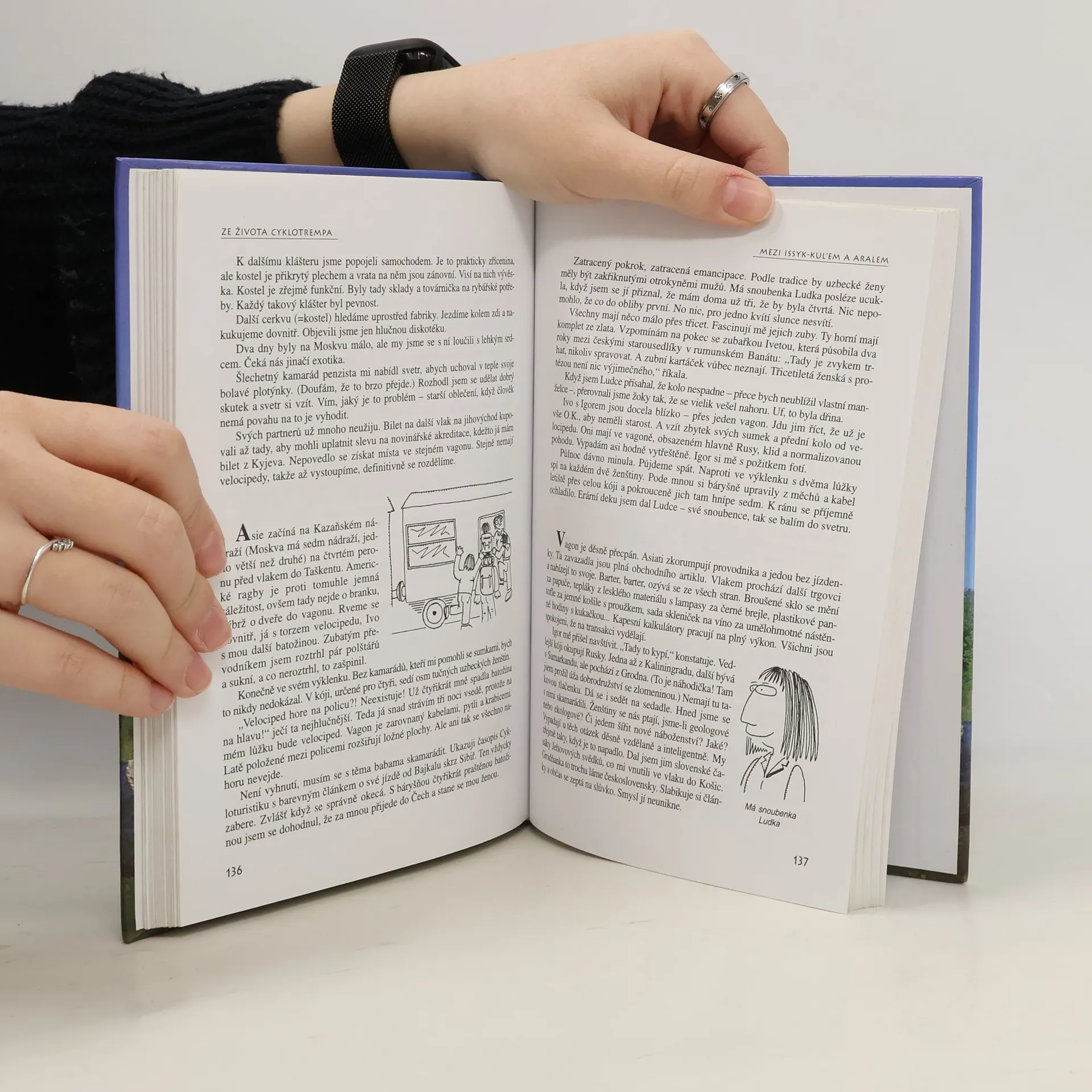 Kniha začíná nešťastným dobrodružstvím způsobeným nezodpovědným řidičem náklaďáku v Bělorusku, což vedlo k zlomenině stehenní kosti a pobytu v nemocnici. Atmosféra běloruského zdravotnictví je podrobně popsána, stejně jako únik v kamionu, který autora zachránil před operací v nejistých podmínkách. Následující cesty na kole směřují převážně na východ, do oblastí blízkých autorovu naturelu, kde vyhledává méně civilizované lokality a preferuje cestování s minimálními náklady. Zamiloval si Rumunsko a má dobré vztahy s lidmi v Rusku. Předposlední kapitola popisuje velkou cestu na Island, která trvala 80 dní a zahrnovala 6100 km. Jako jeden z mála cykloturistů necestoval na Island letecky, ale vyjel na kole od svého domova a vrátil se zpět. Cestu kombinoval s plavbou lodí a dvěma zastávkami na Faerských ostrovech, které prozkoumal také na kole. Na závěr shrnuje poznatky o nocování, přičemž eviduje více než 530 noclehů převážně ve volné přírodě. Text doplňuje 150 ilustračních kresbiček od Ladislava Prudkého a 7 barevných mapek pro lepší orientaci v trasách.