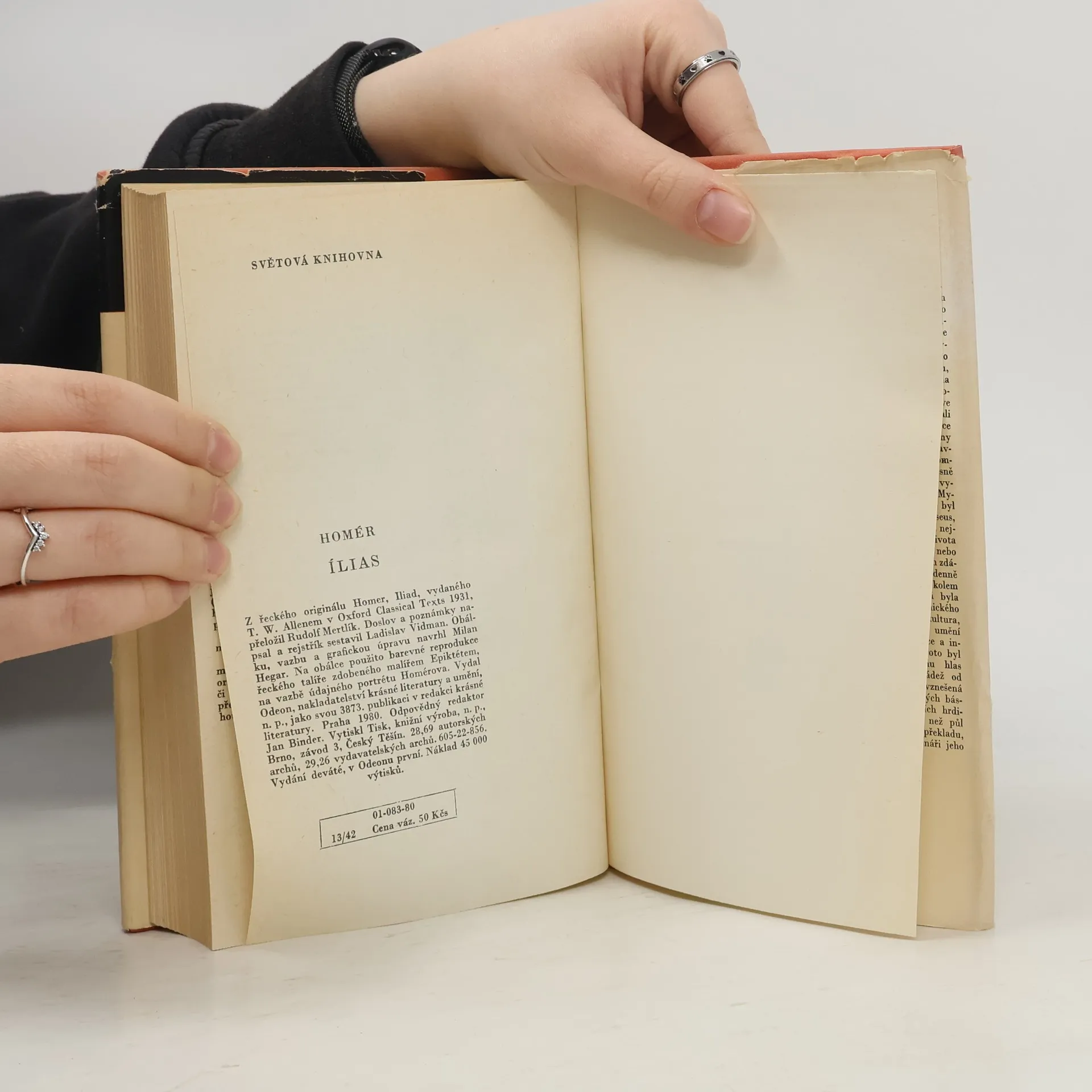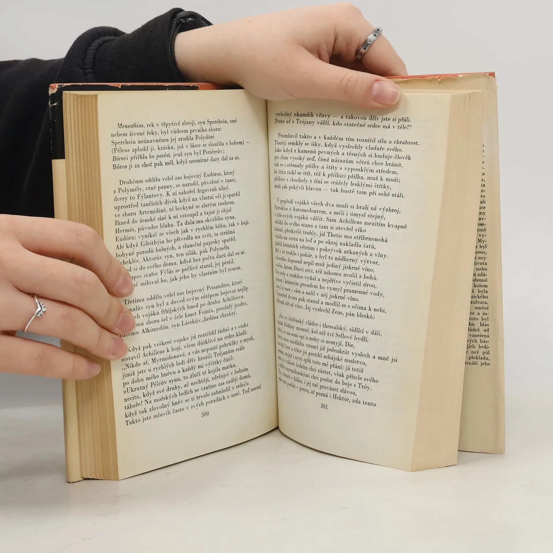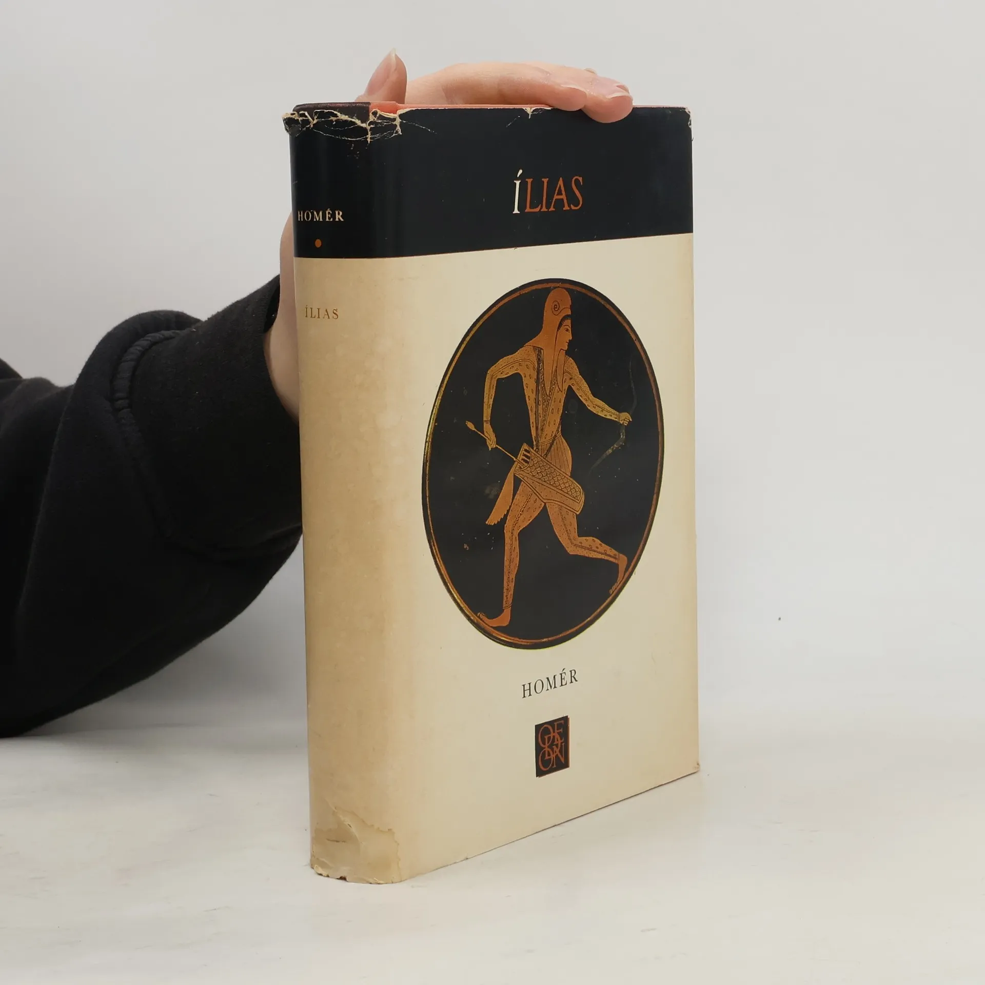 Epos o trojské válce, zobrazující ve 24 zpěvech dobrodružství, válečné i milostné příběhy Agamemmona, Achillea, Odyssea, Parida, Heleny, Hektora aj. i svět olympských bohů, vychází v novém, moderním překladu. Na obálce barevná reprodukce řeckého talíře zdobeného malířem Epiktétem.Obsah: Příčinou války byl únos krásné Heleny, manželky spartského krále Meneláa, synem trojského krále Priama, kralevicem Paridem. Meneláos se svým bratrem Agamemnonem zorganizoval odvetné tažení řeckých kmenů proti Tróji. Epos líčí události posledního, desátého roku války, které vyjadřují hněv Achilleův. Řek Achilleus, jemuž je předurčena velká sláva a blízká smrt, se odmítá zúčastnit dalších bojů, neboť Agamemnon mu odňal ukořistěnou otrokyni Bríseovnu. Uražený Achilles půjčí svou zbroj příteli Patroklovi, ten je však zabit trojským hrdinou Hektorem. V souboji Meneláa s únoscem Paridem Paris sice umírá, nakonec je však zachráněn bohyní Afroditou. Vyvrcholením eposu je vylíčení souboje Achillea, mstícího smrt přítele Patrokla, s Hektorem, který končí Achilleovým vítězstvím a potupou zabitého Hektora, vláčeného kolem trojských hradeb a nakonec vydaného králi Priamovi. 01-083-80