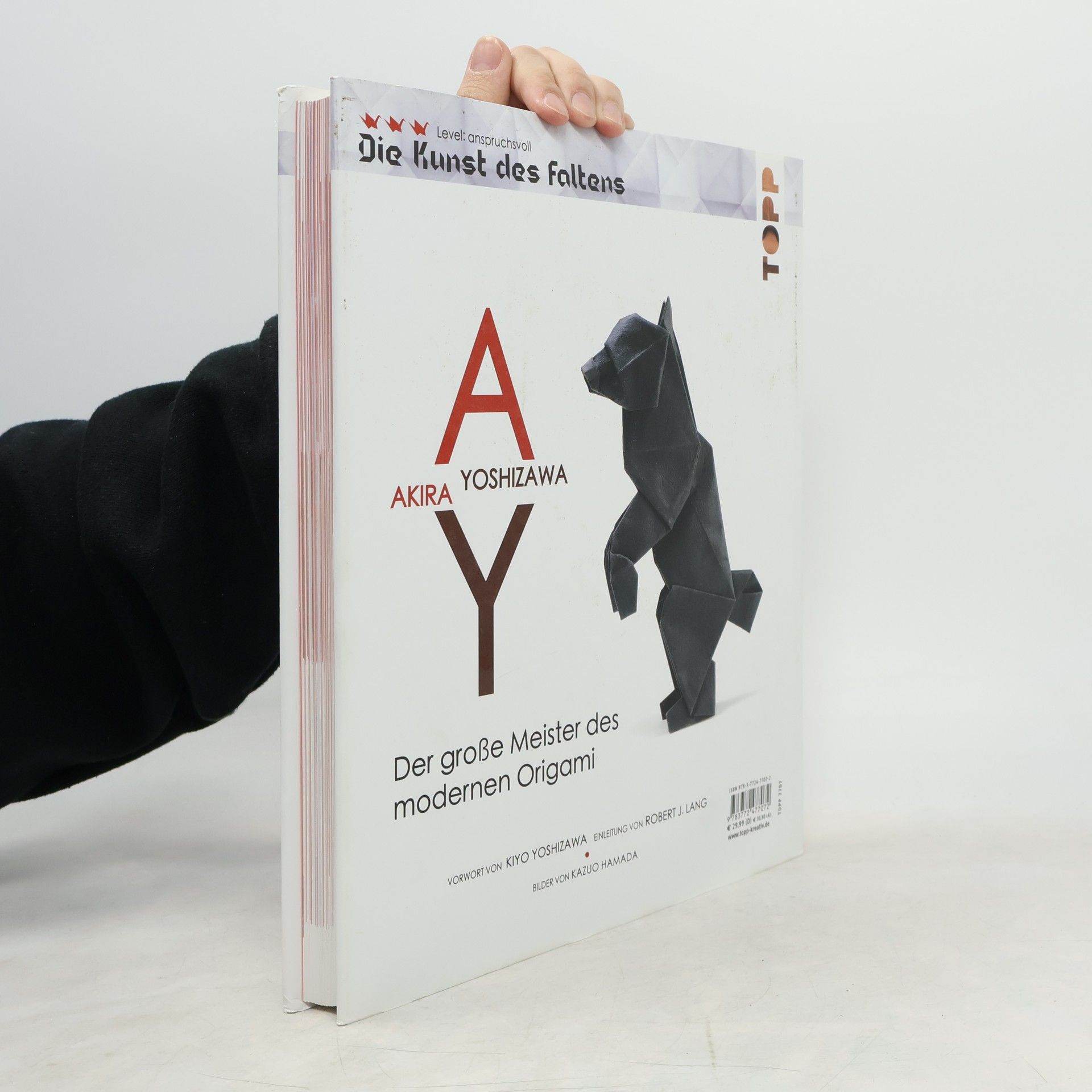 Akira Yoshizawa, 1911 in Kaminokawa in Japan geboren, gilt als Begründer des modernen Origami und schuf rund 50.000 neue Modelle. Er revolutionierte das System der Faltanleitungen, indem er als Erster die einzelnen Faltschritte mithilfe von Pfeilen und Linien darstellte, sodass auch komplexe Modelle aufgezeichnet werden konnten. Und auch die Erfindung des Nassfaltens geht auf das Konto des seit 2005 verstorbenen japanischen Meisters - Yoshizawa war ein Origamist par excellence. Dieser Bildband versammelt rund 50 Modelle des Großmeisters und erklärt nach Yoshizawas System mithilfe von Faltdiagrammen und Zeichnungen genau, wie man diese nachfalten kann - vom Gorilla bis zum Bären, vom Tigerbaby bis zum Schmetterling.