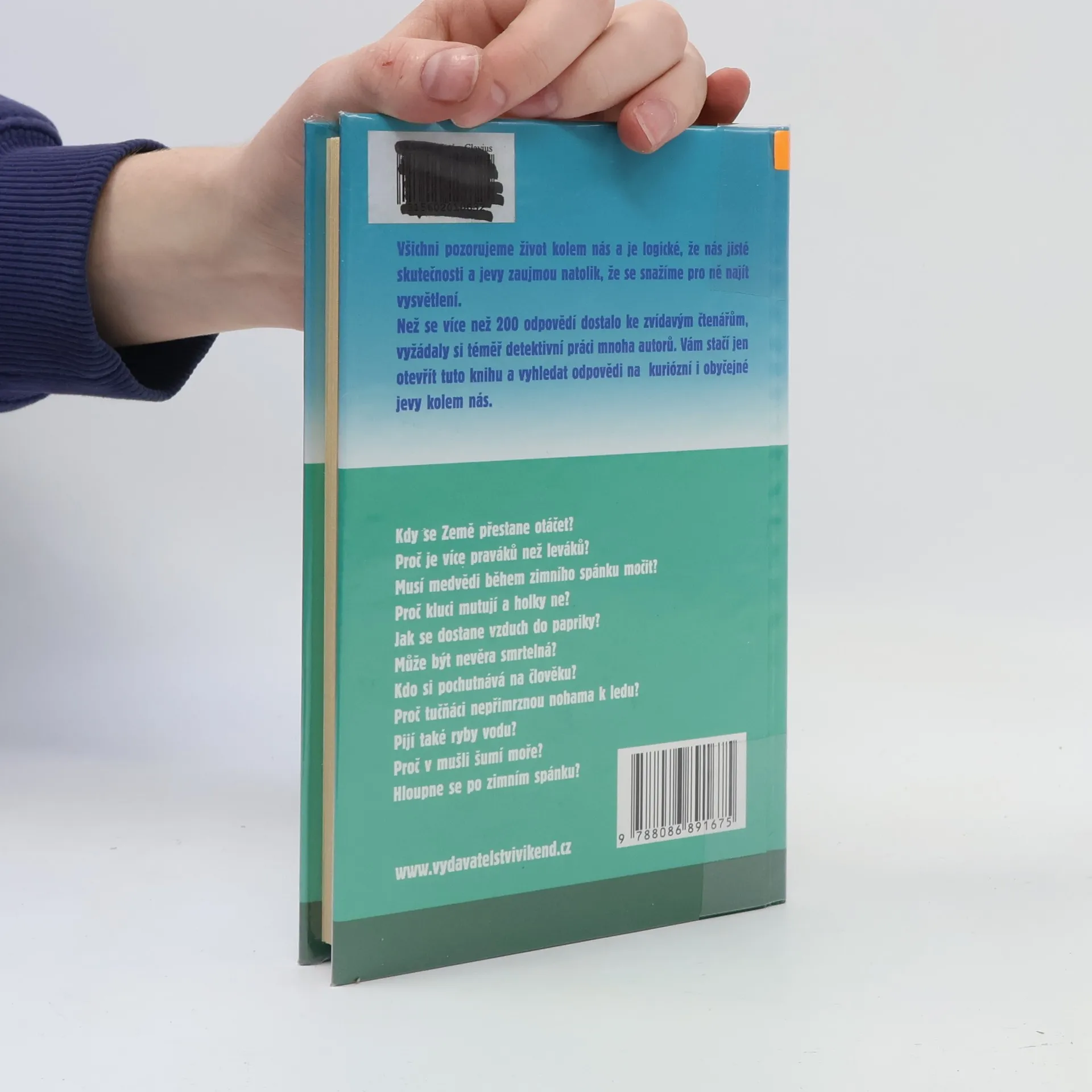 Než se více než 200 odpovědí v této knize dostalo ke zvídavým čtenářům, vyžádaly si téměř detektivní práci mnoha autorů. Vám stačí jen otevřít tuto knihu a vyhledat odpovědi na kuriózní i obyčejné jevy kolem nás. Kdy se Země přestane otáčet? Proč je více praváků než leváků? Musí medvědi během zimního spánku močit? Proč kluci mutují a holky ne? Kdo si pochutnává na člověku? Proč tučňáci nepřimrznou nohama k ledu? Pijí také ryby vodu? A mnoho dalších záludných otázek a odpovědí.