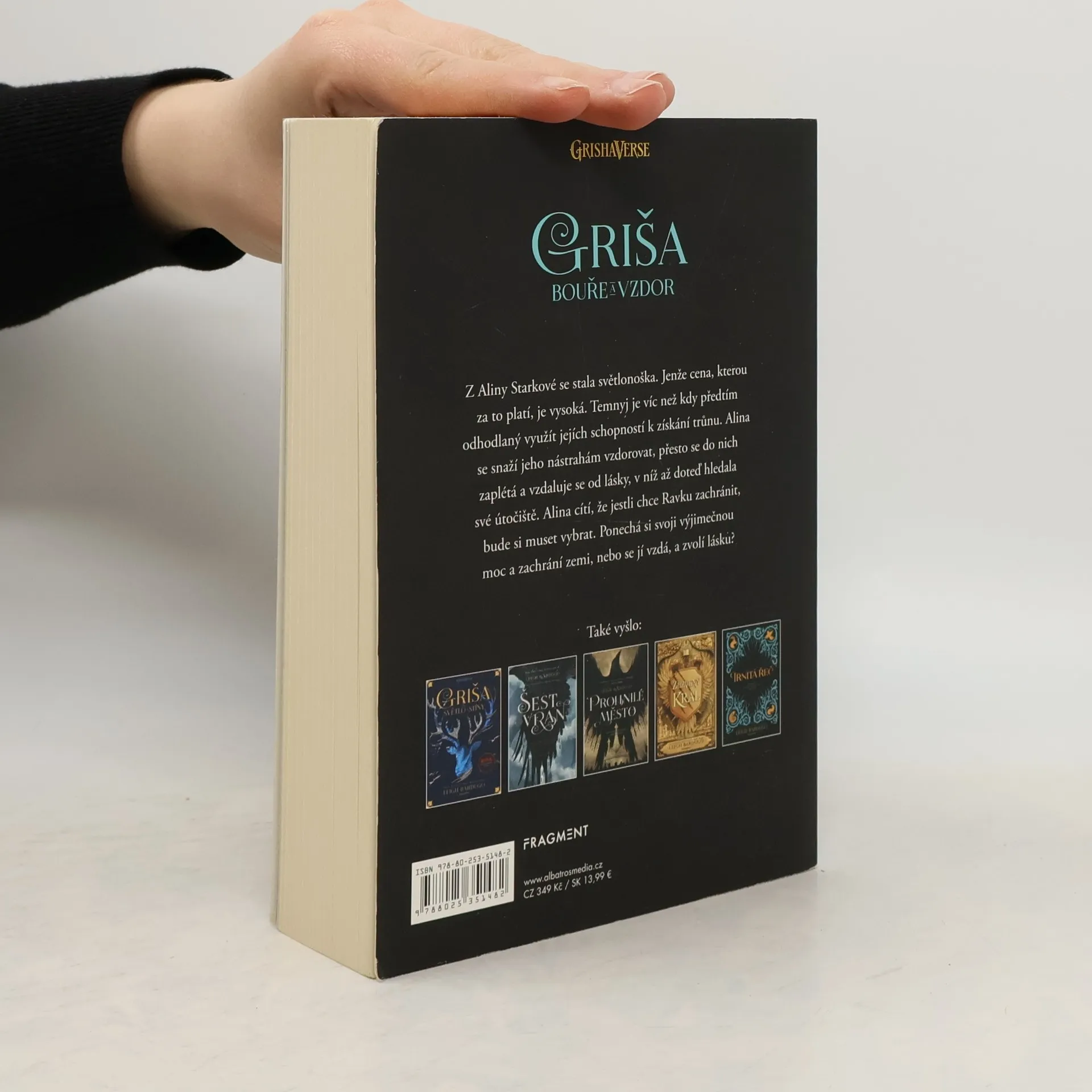 Na Alinu Starkovou se žene divoká bouře. Čeká ji vnitřní boj. Vyjde z něj jako vítěz, nebo jako poražený? Druhý díl světového bestselleru! Z Aliny Starkové se stala světlonoška. Jenže cena, kterou za to platí, je vysoká. Temnyj je víc než kdy předtím odhodlaný využít jejích schopností k získání trůnu. Alina se snaží jeho nástrahám vzdorovat, přesto se do nich zaplétá a vzdaluje se od lásky, v níž až doteď hledala své útočiště. Alina cítí, že jestli chce Ravku zachránit, bude si muset vybrat. Ponechá si svoji výjimečnou moc a zachrání zemi, nebo se jí vzdá, a zvolí lásku?