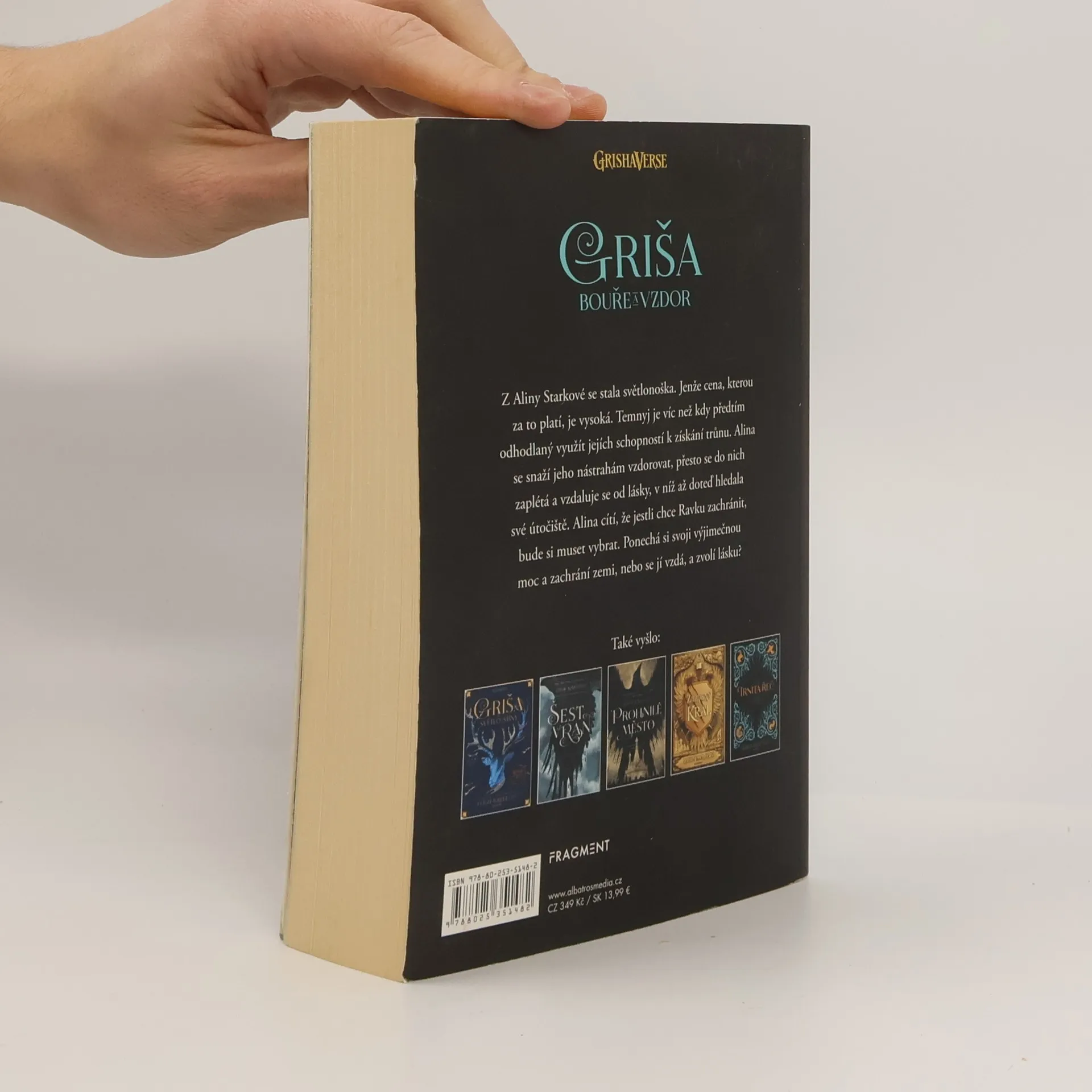 Na Alinu Starkovou se žene divoká bouře. Čeká ji vnitřní boj. Vyjde z něj jako vítěz, nebo jako poražený? Druhý díl světového bestselleru! Z Aliny Starkové se stala světlonoška. Jenže cena, kterou za to platí, je vysoká. Temnyj je víc než kdy předtím odhodlaný využít jejích schopností k získání trůnu. Alina se snaží jeho nástrahám vzdorovat, přesto se do nich zaplétá a vzdaluje se od lásky, v níž až doteď hledala své útočiště. Alina cítí, že jestli chce Ravku zachránit, bude si muset vybrat. Ponechá si svoji výjimečnou moc a zachrání zemi, nebo se jí vzdá, a zvolí lásku?