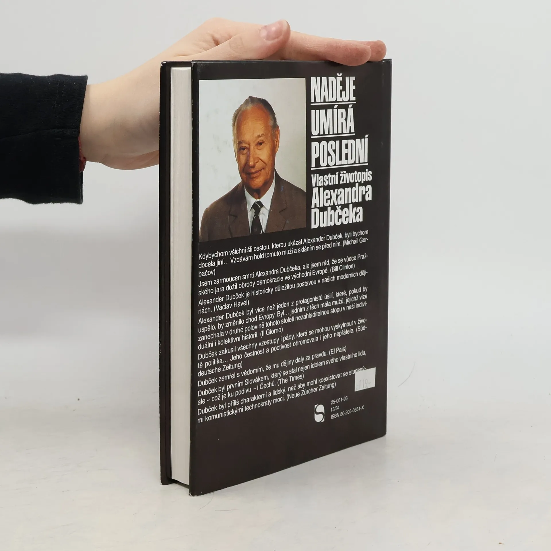 V listopadu 1992 se slovenský a český národ rozloučil s Alexandrem Dubčekem, jehož tragická smrt symbolizovala konec společného státu Čechů a Slováků. Dubčekův životní příběh je prostý, protože v něm nejsou žádná tajemství; žil podle svého přesvědčení a věřil ve své ideály. Zároveň je jeho příběh neobyčejný, neboť se stal symbolem a spolutvůrcem Pražského jara 1968 a proměny společnosti v letech 1989-1992. Narodil se v roce 1921 v Uhrovci a dětství prožil v Kirgizii. Na konci války se zapojil do Slovenského národního povstání, věříc v sociálně spravedlivou společnost. I když se nevyhnul omylům, vždy se snažil napravit je dalšími činy. Jeho úspěchy a porážky formovaly jeho politické postoje a charakter. Dubček nepodlehl svodům moci a věřil v tvořivé schopnosti lidí. Politika pro něj byla službou lidu a národu. Kniha jeho vzpomínek dokumentuje tento přístup. Pražské jaro 1968 je ve světě známé, a snad Dubčekova autobiografie pomůže překonat malicherné snahy o hledání stínů minulosti, aby se ukázala skutečná velikost tohoto historického okamžiku.
