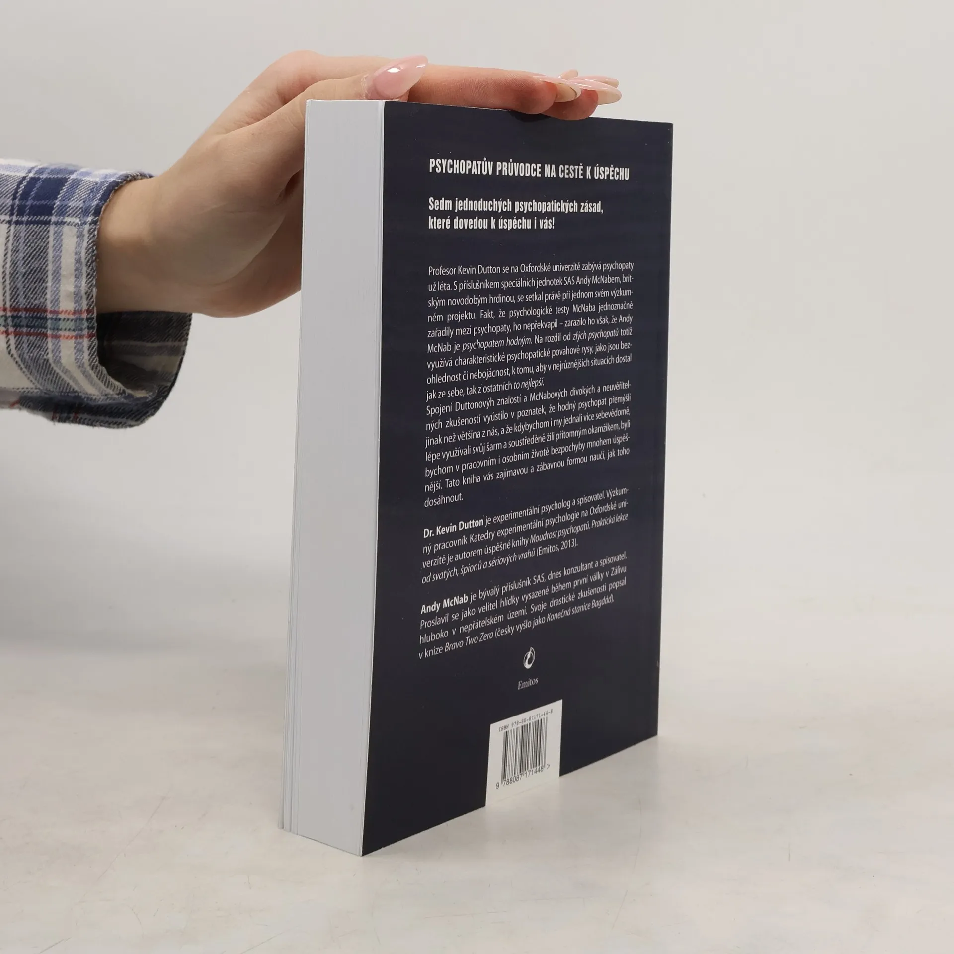 Profesor Kevin Dutton se na Oxfordské univerzitě zabývá psychopaty už léta. S příslušníkem speciálních jednotek SAS Andy McNabem, britským novodobým hrdinou, se setkal právě při jednom svém výzkumném projektu. Fakt, že psychologické testy McNaba jednoznačně zařadily mezi psychopaty, ho nepřekvapil – zarazilo ho však, že Andy McNab je psychopatem hodným. Na rozdíl od zlých psychopatů totiž využívá charakteristické psychopatické povahové rysy, jako jsou bezohlednost či odvaha, k tomu, aby v nejrůznějších situacích dostal jak ze sebe, tak z ostatních to nejlepší. Spojení McNabových divokých a neuvěřitelných zkušeností a Duttonových znalostí vyústilo v poznatek, že hodný psychopat přemýšlí jinak než většina z nás, a že kdybychom i my dokázali prohloubit a lépe využívat vlastnosti jako šarm, chladnokrevnost, sebevědomí nebo odvahu, byli bychom v pracovním i osobním životě bezpochyby mnohem úspěšnější. V této knize se zajímavou a zábavnou formou naučíte, jak toho dosáhnout.
