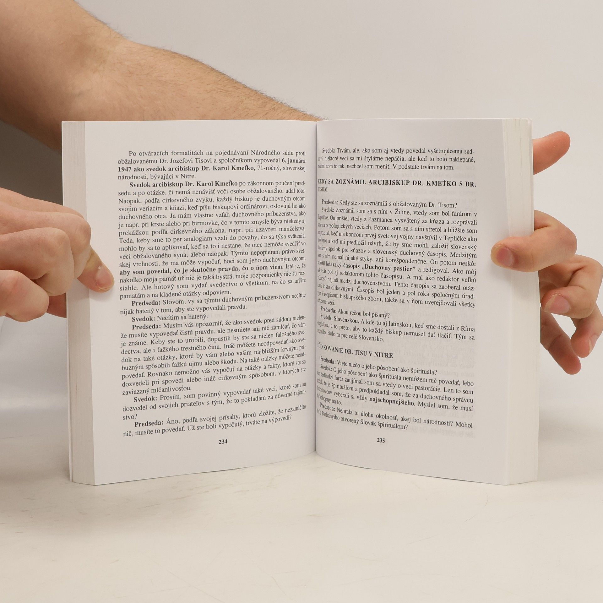 Dr. Jozef Tiso o sebe - jeho obhajovacia reč pred tzv. Národným súdom - Svedecká výpoveď arcibiskupa Dr. Karola Kmeťku v procese s Dr. Jozefom Tisom - právnický pohľad na proces s Dr. Jozefom Tisom - podnet na revíziu