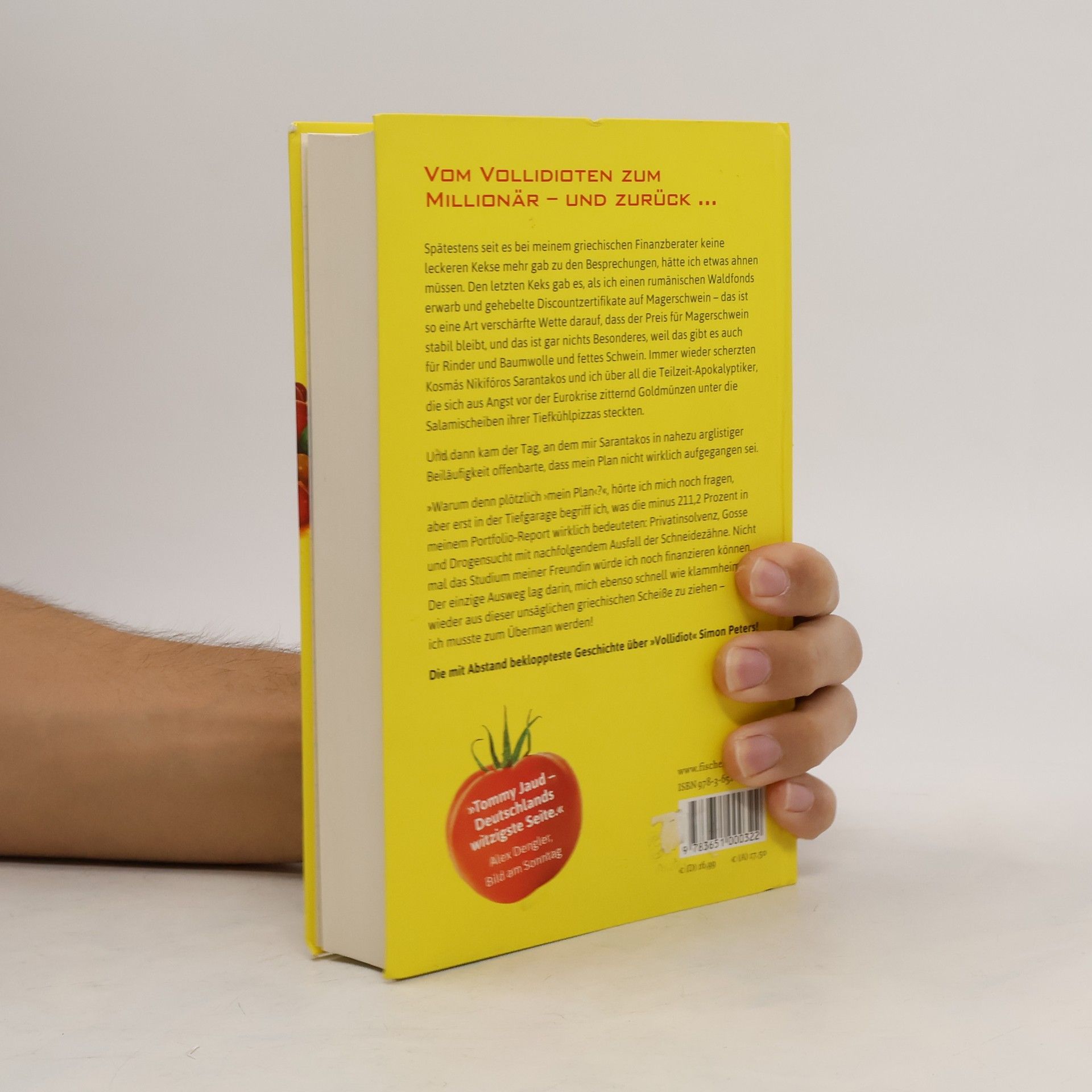 Vom Vollidioten zum Millionär – und zurück … Spätestens seit es bei meinem griechischen Finanzberater keine leckeren Kekse mehr gab zu den Besprechungen, hätte ich etwas ahnen müssen. Den letzten Keks gab es, als ich einen rumänischen Waldfonds erwarb und gehebelte Discountzertifikate auf Magerschwein – das ist so eine Art verschärfte Wette darauf, dass der Preis für Magerschwein stabil bleibt, und das ist gar nichts Besonderes, weil das gibt es auch für Rinder und Baumwolle und fettes Schwein. Immer wieder scherzten Kosmás Nikifóros Sarantakos und ich über all die Teilzeit-Apokalyptiker, die sich aus Angst vor der Eurokrise zitternd Goldmünzen unter die Salamischeiben ihrer Tiefkühlpizzas steckten. Und dann kam der Tag, an dem mir Sarantakos in nahezu arglistiger Beiläufigkeit offenbarte, dass mein Plan nicht wirklich aufgegangen sei. »Warum denn plötzlich ›mein Plan‹?‹, hörte ich mich noch fragen, aber erst in der Tiefgarage begriff ich, was die minus 211,2 Prozent in meinem Portfolio-Report wirklich bedeuteten: Privatinsolvenz, Gosse und Drogensucht mit nachfolgendem Ausfall der Schneidezähne. Nicht mal das Studium meiner Freundin würde ich noch finanzieren können. Der einzige Ausweg lag darin, mich ebenso schnell wie klammheimlich wieder aus dieser unsäglichen griechischen Scheiße zu ziehen – ich musste zum Überman werden! Die mit Abstand bekloppteste Geschichte über »Vollidiot« Simon Peters!