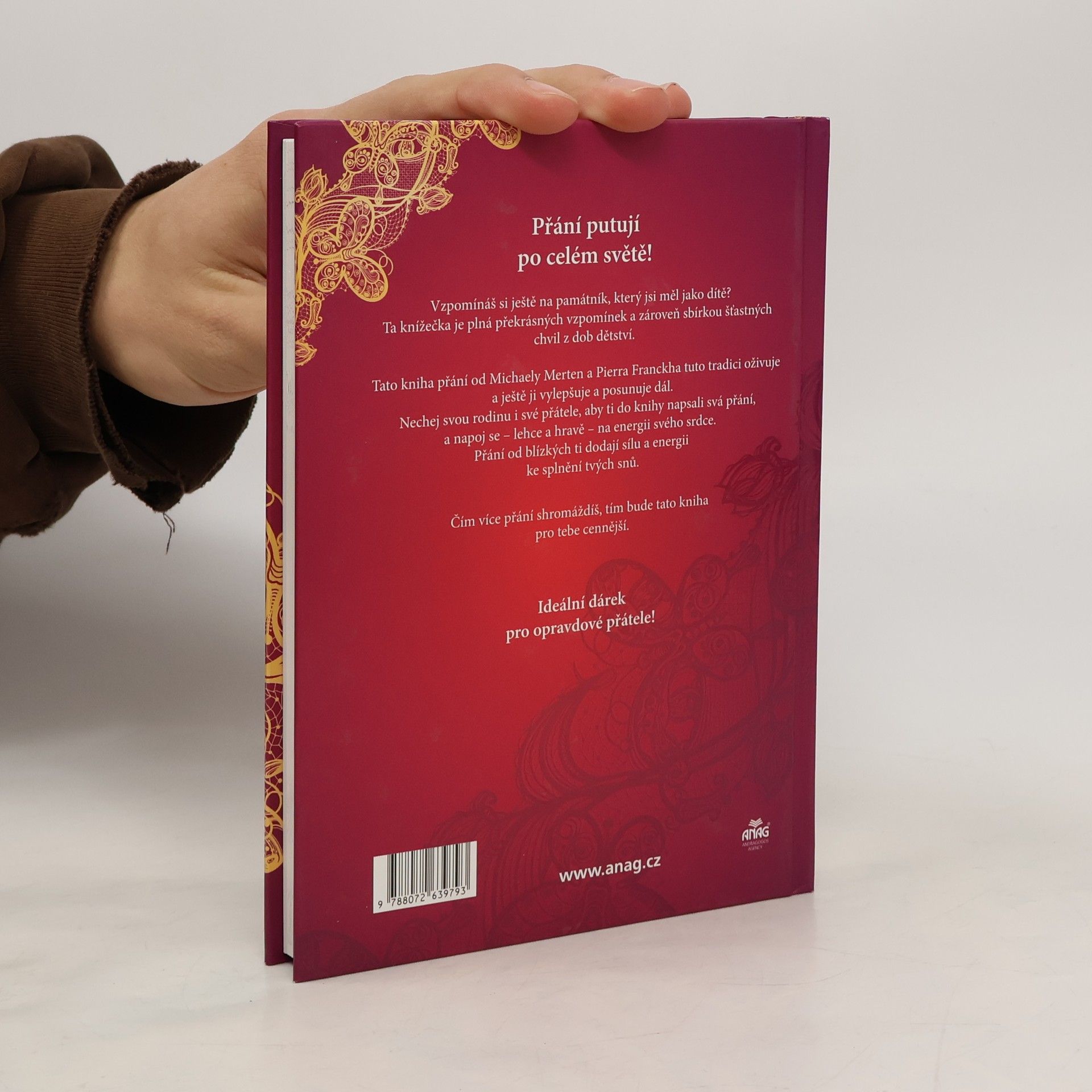 Vneste to, co vám přejí přátelé, do svého života Tento zápisník není jen krásnou vzpomínkou, obsahuje velký potenciál pro léčebné vibrace. Léčebný efekt může člověk cíleně použít, aby vytvořil pozitivní rezonanční pole ve svém životě a životě druhých. Památníček plný přání jako ideální dárek pro přátele Do okouzlujícího přacího alba (zápisníku) vepíše například váš partner, váš nejlepší přítel nebo milý spolupracovník, co dobrého vám chce přát. Výsledné rezonanční pole má na vás stejně pozitivní vliv jako na vaše blízké a pomůže vám přilákat nevyčerpatelné bohatství vesmíru. Ideální dárek pro opravdové přátele!
