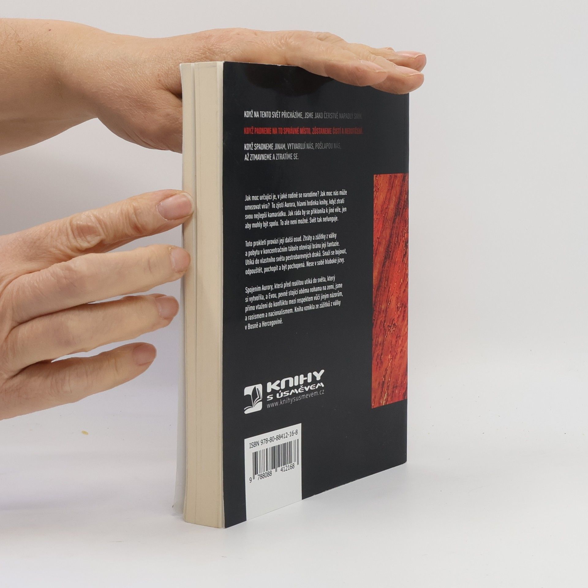 Když na tento svět přicházíme, jsme jako čerstvě napadlý sníh. Když padneme na to správné místo zůstaneme čistí a nedotčení. Když spadneme jinam, vytvarují nás, pošlapou nás až ztmavneme a ztratíme se. Jak moc určující je, v jaké rodině se narodíme? Jak moc nás může omezovat víra? To zjistí Aurora, hlavní hrdinka knihy, když ztratí svou nejlepší kamarádku. Jak ráda by se přiklonila k jiné víře, jak ráda by uctívala jiného draka, jen aby mohly být spolu. To ale není to možné. Svět tak nefunguje. Toto prokletí provází její další osud. Ztráty a zážitky z války a pobytu v koncentračním táboře otevírají bránu její fantazie. Utíká do světa pestrobarevných draků. Snaží se bojovat, odpouštět, pochopit a být pochopená. Nesoucí v sobě hluboké jizvy. Spojením reality se světem draků, jsme přímo vtažení do konfliktu respektu vůči jiným názorům, rasismu a nacionalismu. Kniha vznikla ze zážitků z války v Bosně.