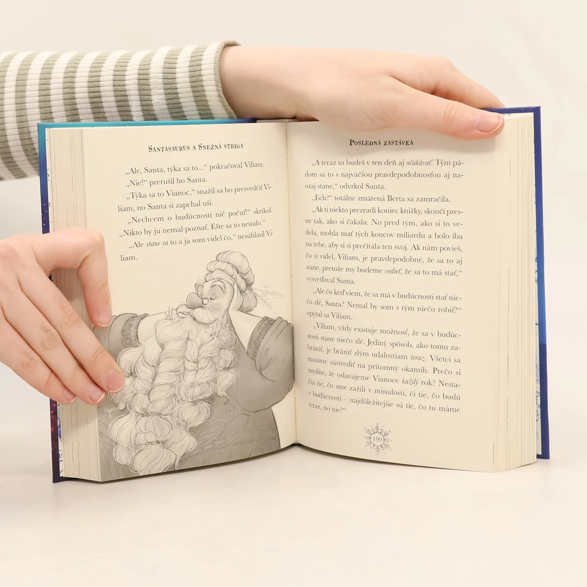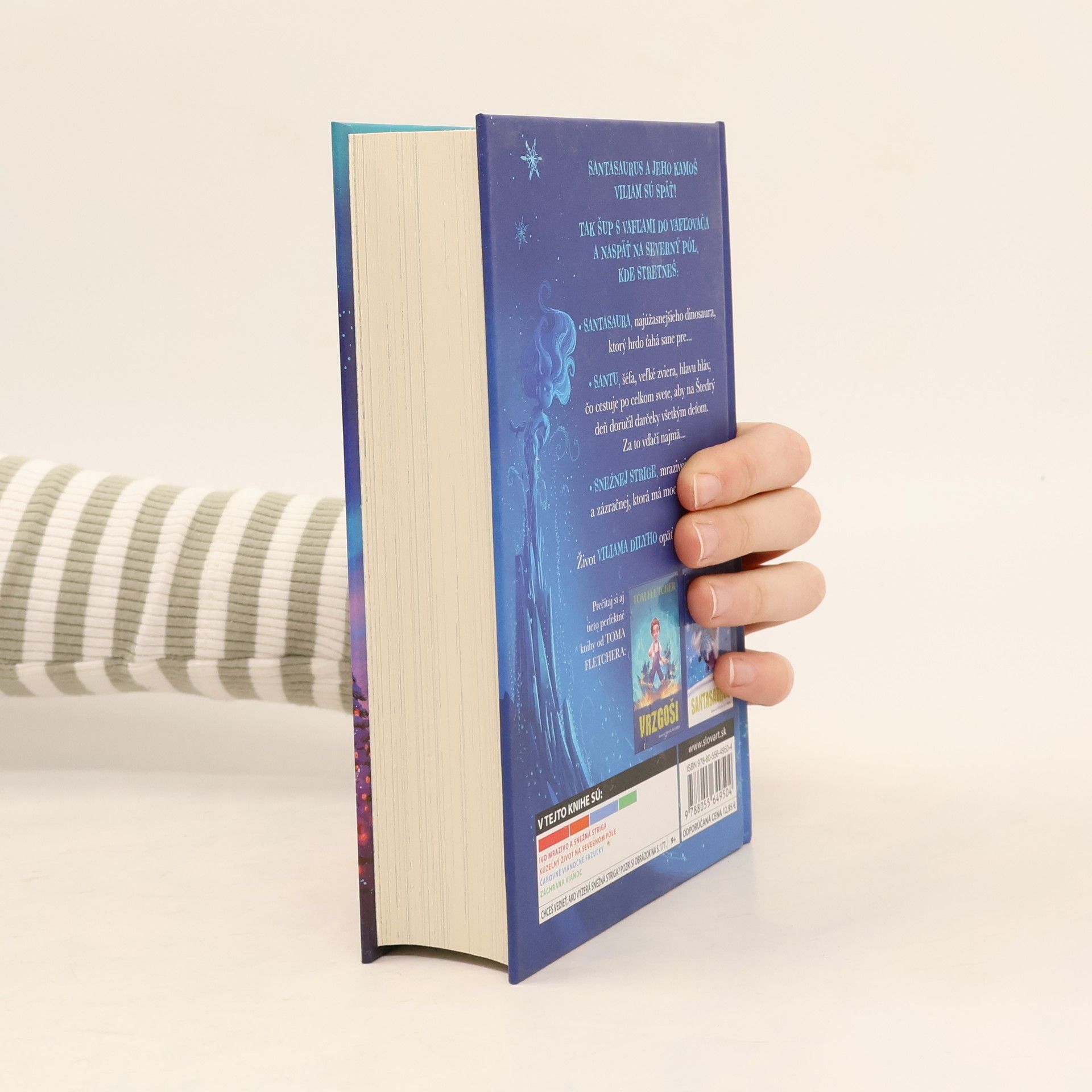 Druhá časť knihy o Santasaurovi a jeho kamarátovi Viliamovi od slávneho anglického autora detských kníh, textára a speváka Toma Fletchera je na svete. Prešiel rok odkedy Viliam Dily prežil so Santasaurom neuveriteľné dobrodružstvo. Teraz ho čaká návrat na severný pól a stretnutie so záhadnou Snežnou strigou. Práve vďaka nej stihne vždy Santa na Štedrý večer obletieť celý svet a rozniesť darčeky všetkým deťom. Keď Viliam zistí, že osud Vianoc visí na vlásku, urobia so Santasaurom všetko, čo sa dá, len aby Vianoce zachránili. Bude to stačiť? Čarovný príbeh pre celú rodinu plný čarov, spievania, nevídaného priateľstva a vtipu, vydávame (ako inak) pred Vianocami.