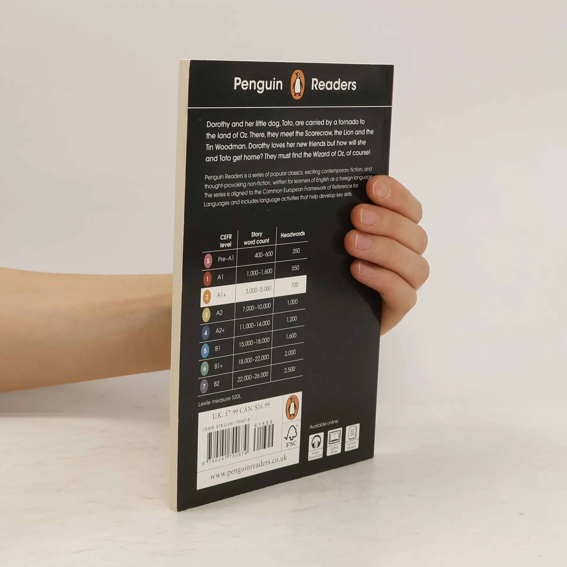 The Wizard of Oz, as part of the Penguin Readers series, presents a simplified version of the classic tale tailored for English language learners at the A1+ level. The story follows Dorothy and her dog Toto as they journey through Oz, meeting memorable characters like the Scarecrow, Lion, and Tin Man while seeking the Wizard to return home. The book features engaging illustrations and includes exercises to enhance grammar and vocabulary skills, alongside online resources like audio editions and lesson plans for comprehensive learning support.