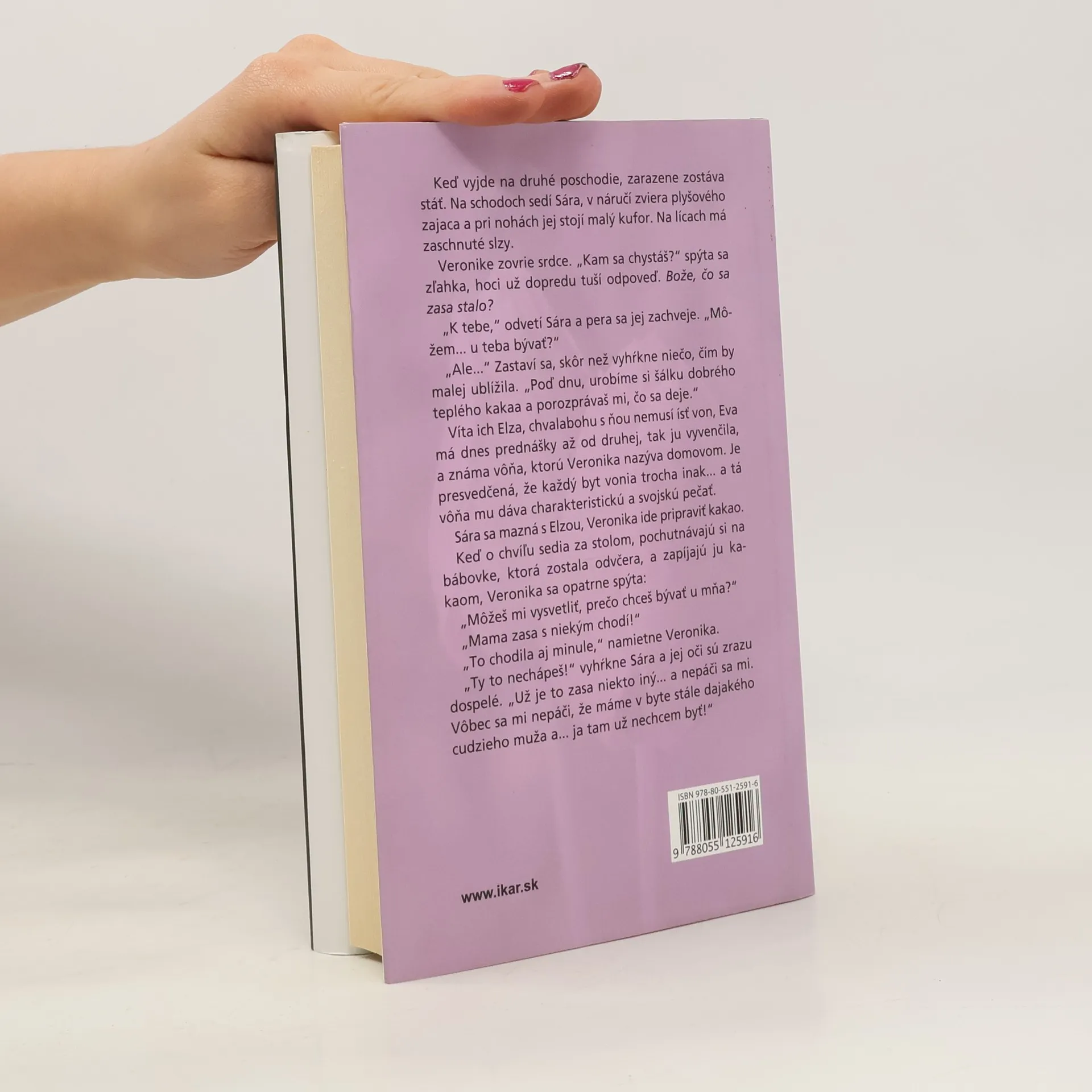 Najnovší autorkin román rozpráva príbeh dvoch žien, priateliek. Anna, prekladateľka, žije s manželom a dvomi dcérkami a na prvý pohľad jej nič nechýba. V skutočnosti je to však trocha inak... Veronika, učiteľka, žije s devätnásťročnou dcérou a vôbec ju netrápi, že v jej živote nie je nijaký muž. Život je však plný prekvapení...