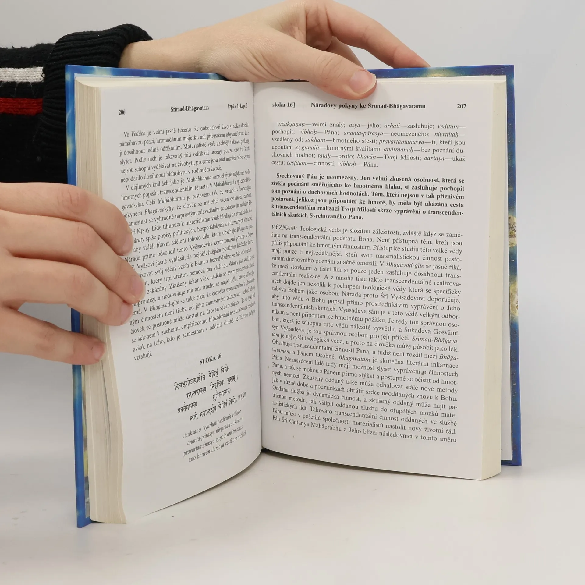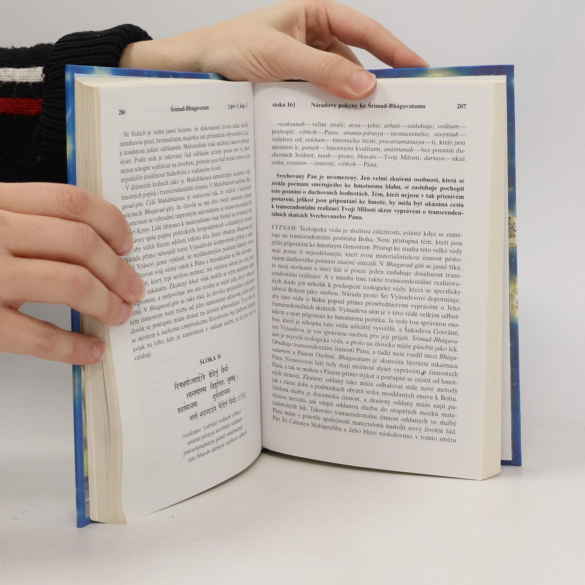Nábožensko-filozofický text, který dává nahlédnout do indického duchovního odkazu. S původními sanskrtskými texty, přepisem do latinského písma, českými synonymy, překlady a podrobnými výklady.