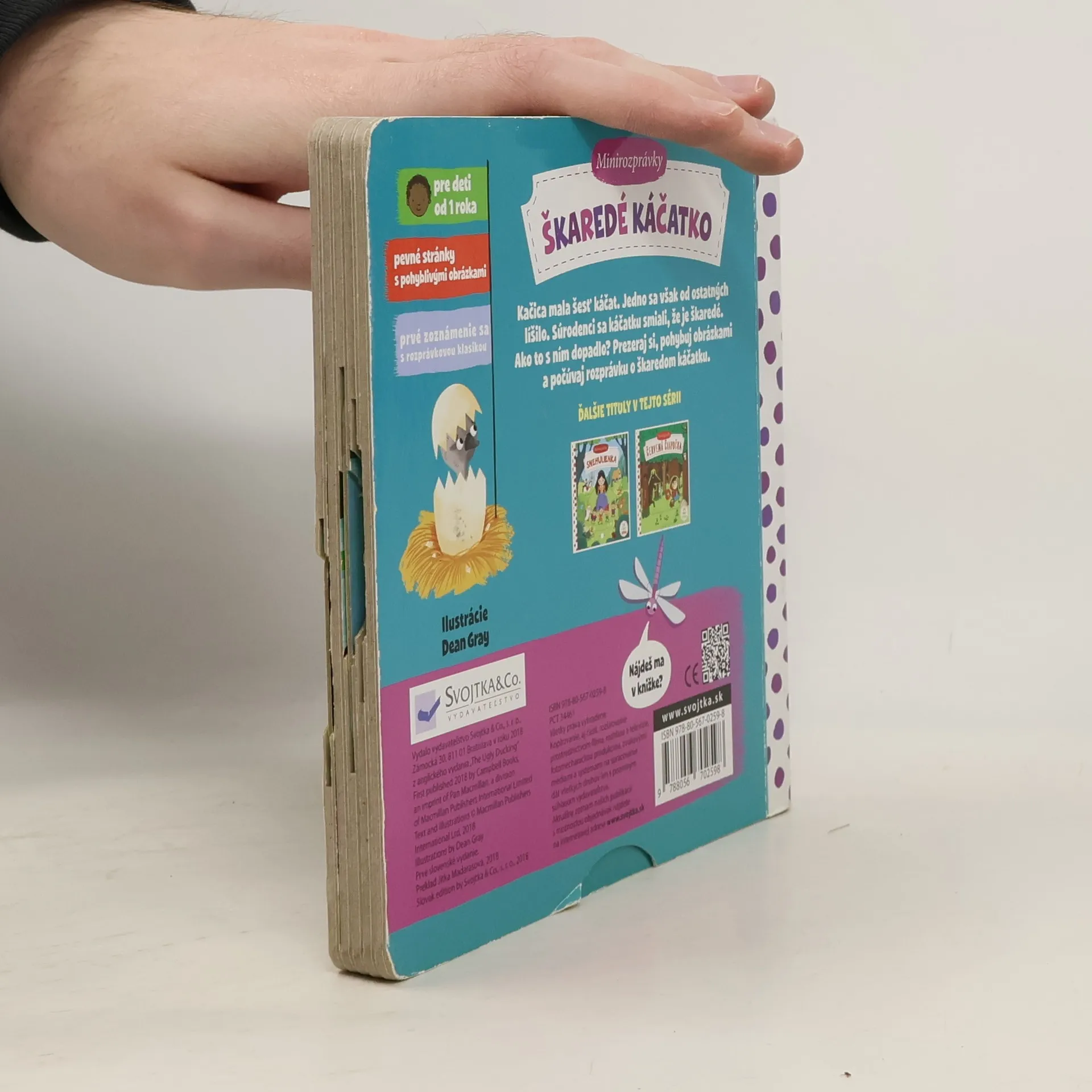 Táto veršovaná minirozprávka je určená deťom od jedného roka. Má pevné stránky s pohyblivými prvkami, takže si deti môžu príbeh oživiť a precviciť si pršteky.