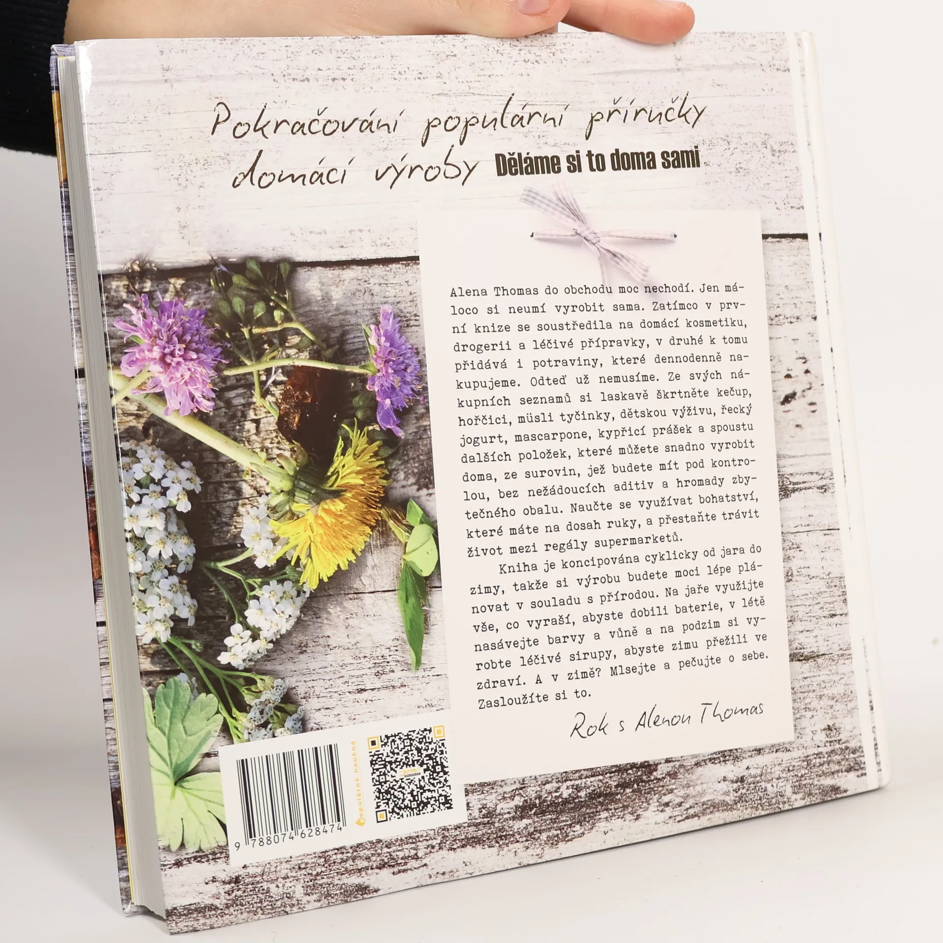 Pokračování populární příručky domácí výroby Děláme si to doma sami. Alena Thomas do obchodu moc nechodí. Jen máloco si neumí vyrobit sama. Zatímco v první knize se soustředila na domácí kosmetiku, drogerii a léčivé přípravky, v druhé rozšiřuje svůj záběr i na základní potraviny, které dennodenně nakupujeme. Odteď už nemusíme. Ze svých nákupních seznamů si laskavě škrtněte chleba, kečup, hořčici, povidla, dětské přesnídávky a spoustu dalších položek, které můžete snadno vyrobit doma, ze surovin, které budete mít pod kontrolou, a bez nežádoucích aditiv či konzervantů. Kniha je koncipována cyklicky od jara do zimy, takže si výrobu budete moci lépe plánovat v souladu s přírodou. Na podzim například vyrobíte léčivé sirupy, abyste zimu přežili ve zdraví, a na jaře zase využijete vše, co právě vyraší, abyste dobili baterie.