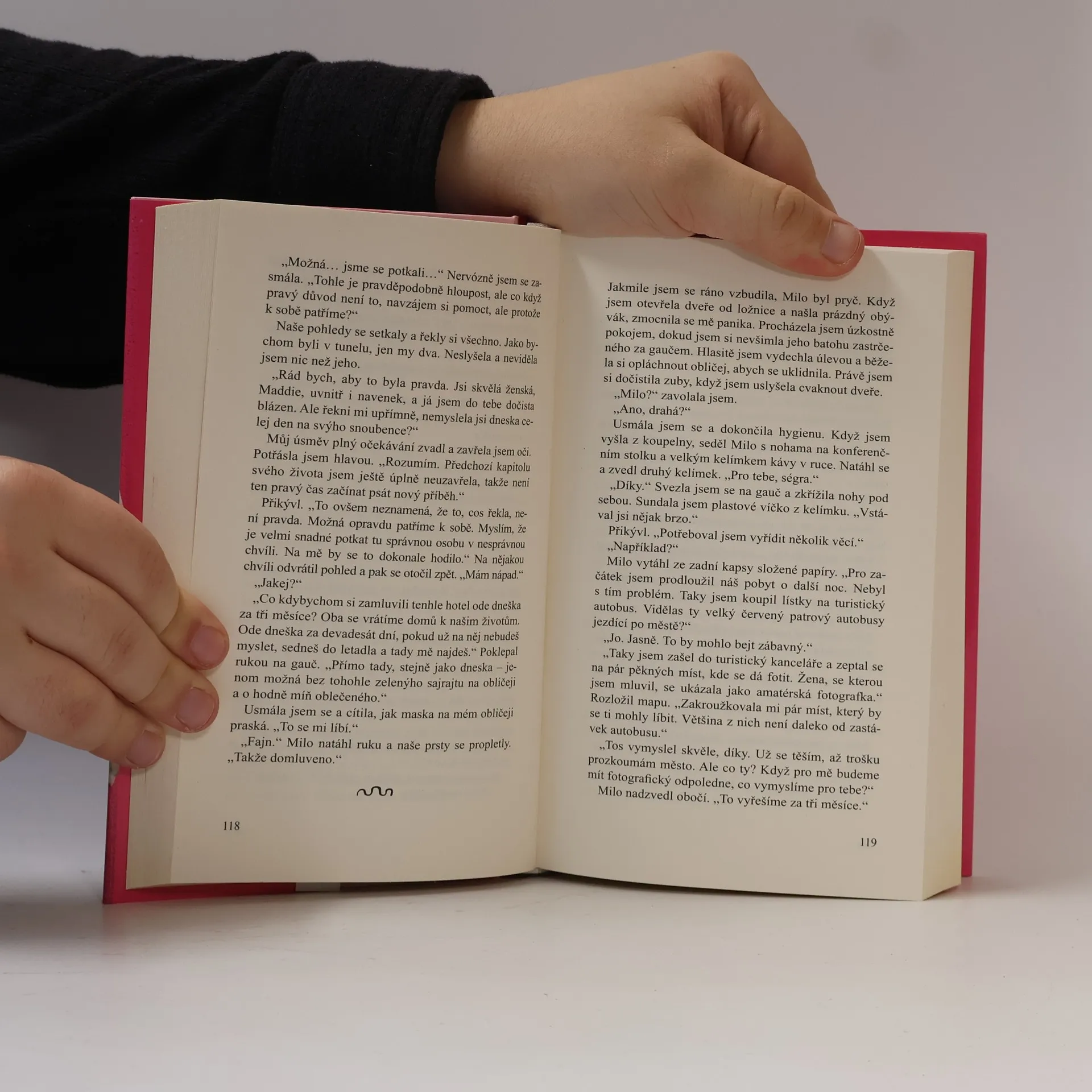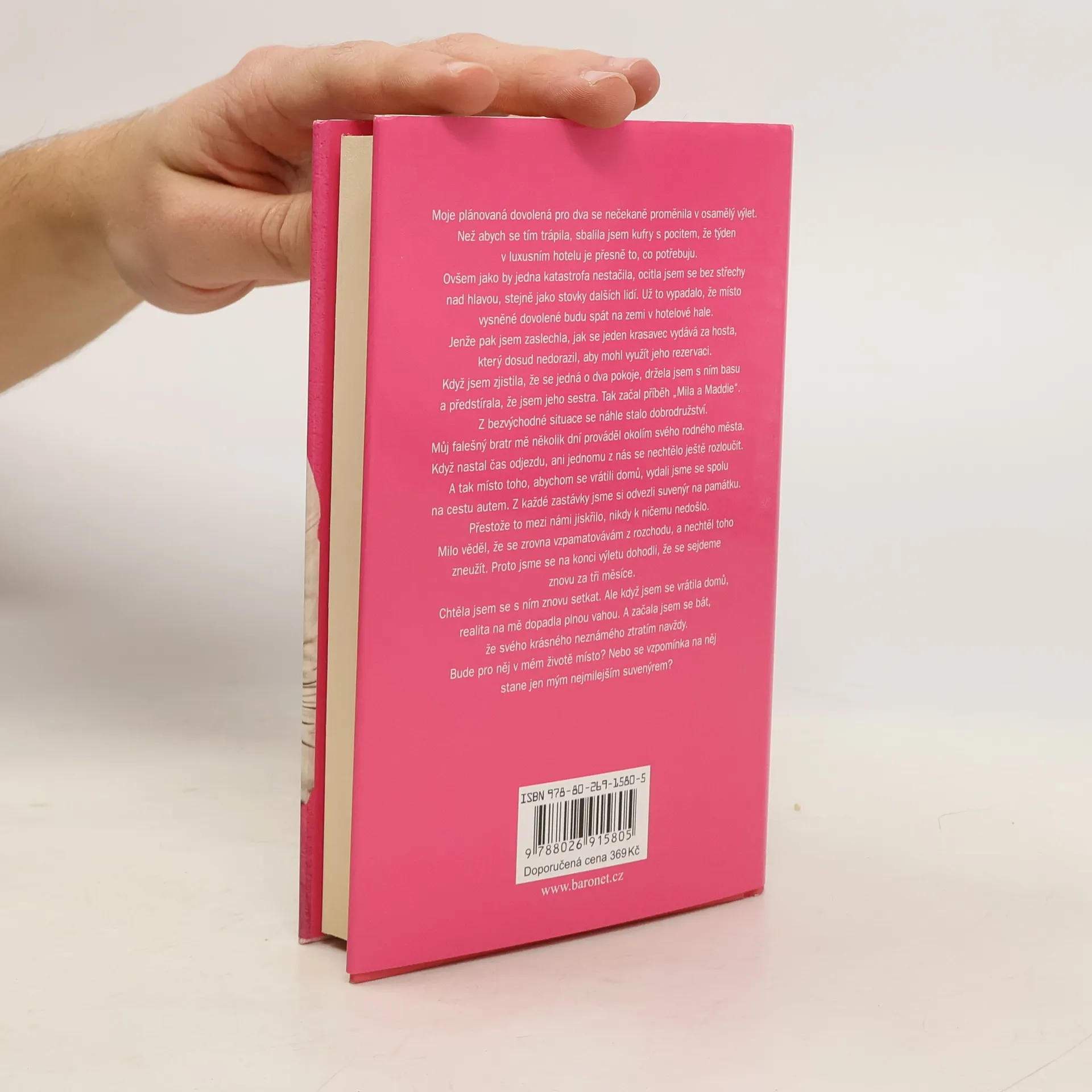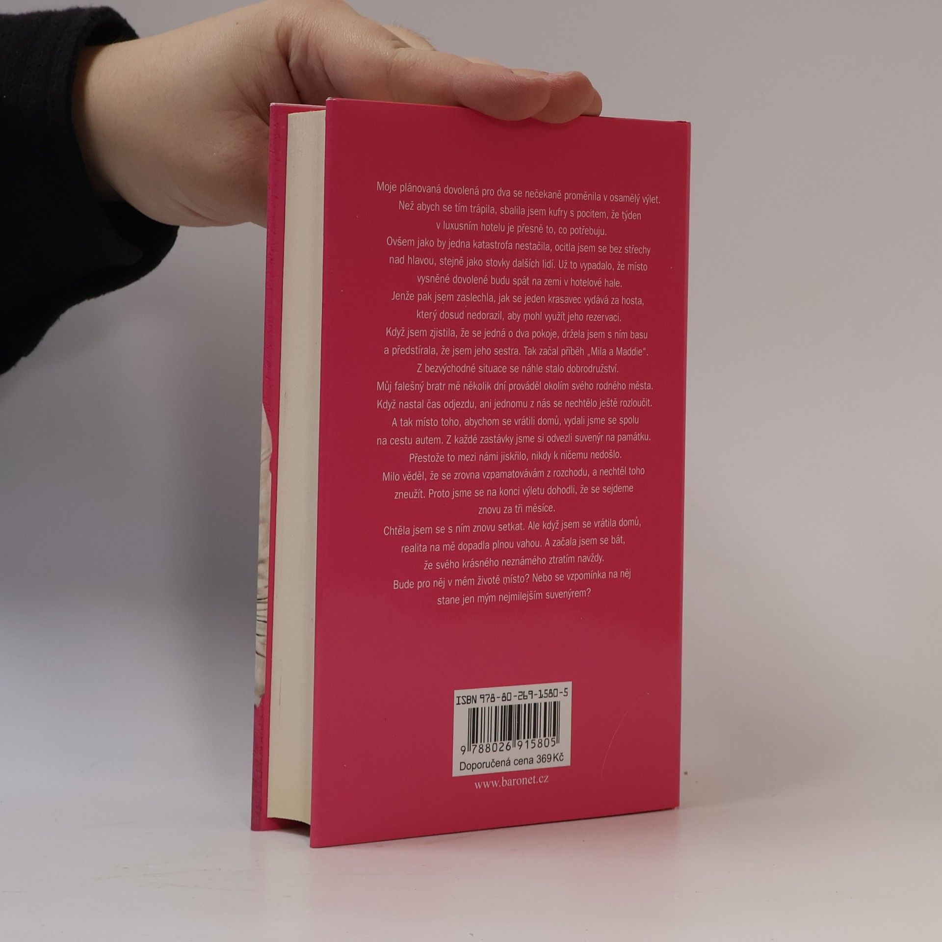 Moje plánovaná dovolená pro dva se nečekaně proměnila v osamělý výlet. Místo abych se trápila, sbalila jsem kufry s pocitem, že týden v luxusním hotelu je přesně to, co potřebuji. Ale brzy jsem se ocitla bez střechy nad hlavou, stejně jako stovky dalších lidí. Když už to vypadalo, že budu spát na zemi v hotelové hale, zaslechla jsem, jak se jeden krasavec vydává za hosta, který dosud nedorazil, aby mohl využít jeho rezervaci. Když jsem zjistila, že se jedná o dva pokoje, začala jsem se vydávat za jeho sestru. Tak začal příběh „Mila a Maddie“. Z bezvýchodné situace se stalo dobrodružství, kdy mě můj falešný bratr prováděl okolím svého rodného města. Když nastal čas odjezdu, ani jednomu z nás se nechtělo rozloučit, a tak jsme se místo návratu domů vydali na cestu autem. Z každé zastávky jsme si odvezli suvenýr na památku. I když mezi námi jiskřilo, nikdy k ničemu nedošlo, protože Milo věděl, že se vzpamatovávám z rozchodu. Na konci výletu jsme se dohodli, že se sejdeme za tři měsíce. Když jsem se vrátila domů, realita na mě dopadla plnou vahou a začala jsem se bát, že svého krásného neznámého ztratím navždy. Bude pro něj v mém životě místo, nebo se vzpomínka na něj stane jen mým nejmilejším suvenýrem?