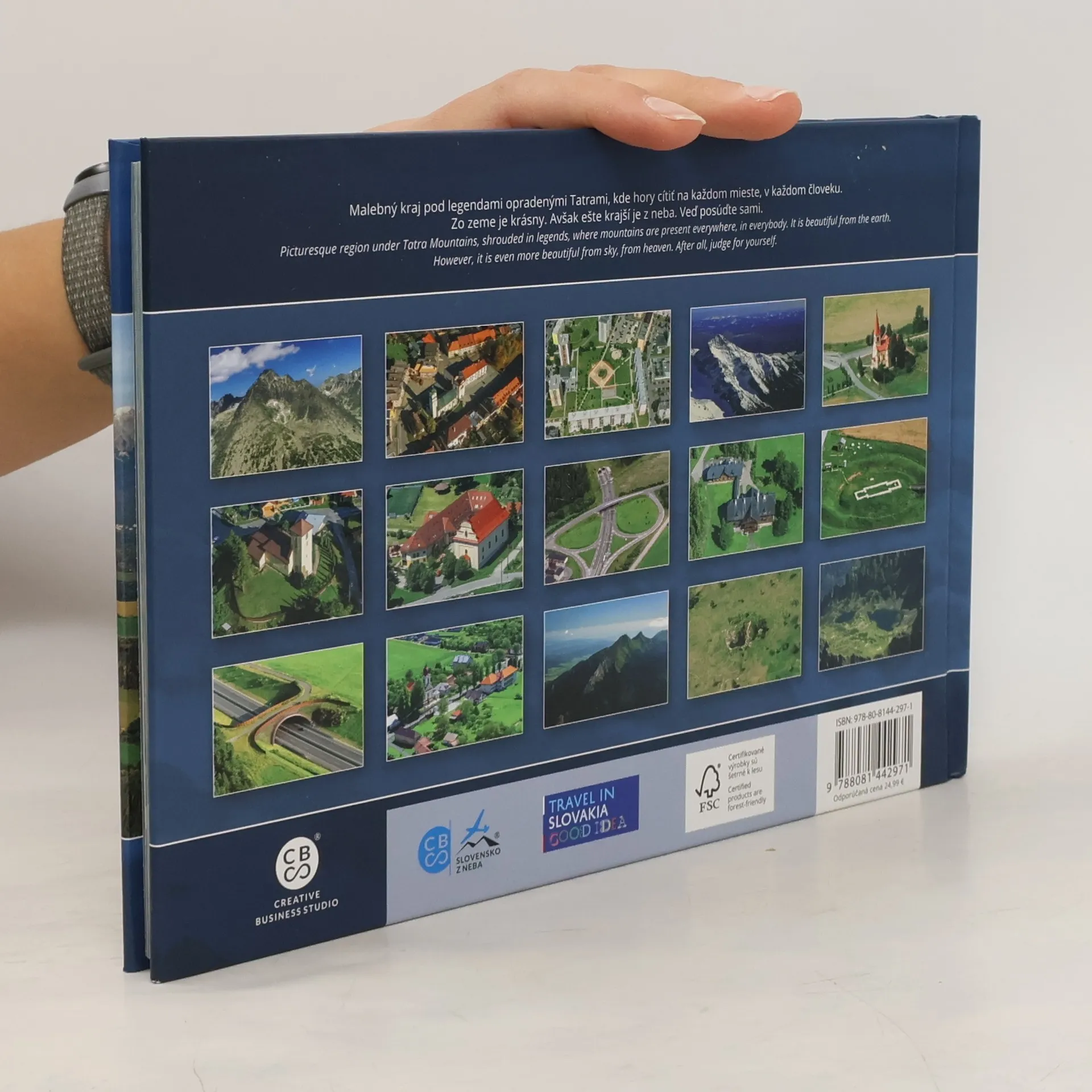 Severu Slovenska dominujú Tatry – najmenšie veľhory sveta, známe mnohým Slovákov aj za hranicami. Stovky skalných štítov sa vypínajú nad Podtatranskou kotlinou, obklopené priezračnými plieskami, hlbokými dolinami a majestátnymi vodopádmi. V regióne sa nachádza takmer tridsať rázovitých obcí a miest, z ktorých každá má svojské čaro umocnené veľhorskou kulisou. Hospodárskym a kultúrnym centrom je Poprad, nazývaný vstupnou bránou do Vysokých Tatier. Až do roku 1946 bol Poprad súčasťou menších mestečiek, ktoré dnes tvoria jeho súčasnú podobu. Medzi perly Popradu patrí Mestská pamiatková rezervácia Spišská Sobota s Kostolom sv. Juraja a malebnými renesančnými zvonicami. Každá obec ponúka unikátne kostolíky a kaštiele, ktoré vyrozprávajú stovky príbehov. Tatranské osady, zasadené pod vysokánskymi štítmi, sú známe svojou architektúrou a kultúrou, ktorá symbolizuje harmóniu medzi človekom, Bohom a prírodou. Tatry lákajú návštevníkov už stovky rokov, pričom piloti a fotografi priniesli do tejto knihy jedinečné pohľady na známe aj menej známe miesta, ktoré sľubujú nezabudnuteľný zážitok.