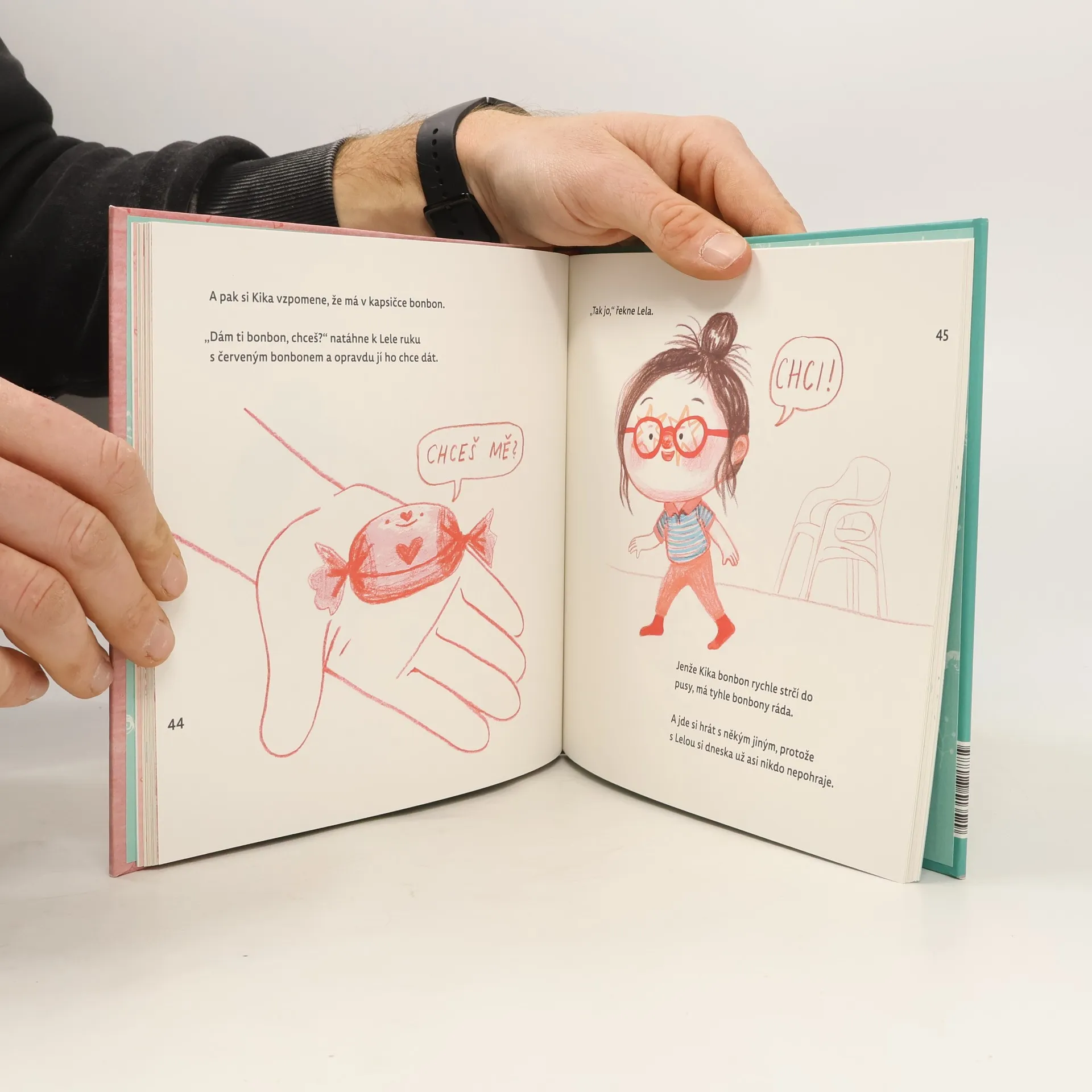 Každé malé dítě ví, že mezi rozbaleným a nerozbaleným lízátkem je nekonečně velký rozdíl.Lela a Kika jsou sestřenice a chodí do stejné školky. Kromě toho jsou i nejlepší kamarádky. A taky se pořád hádají — o to, kdo dostal lepší dárky pod stromeček, kdo bude první na houpačce nebo kdo si dá bonbon, když je jenom jeden. Připadá vám to povědomé?Úsměvnost v jádru absurdních situací je podána s neironizujícím jemným humorem, který dětem umožní nahlédnout konfliktní situace zvenčí a rodičům dodá tolik potřebný nadhled.