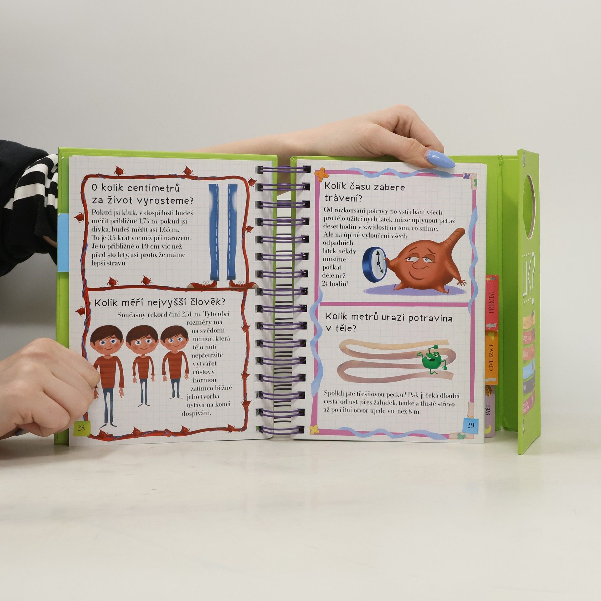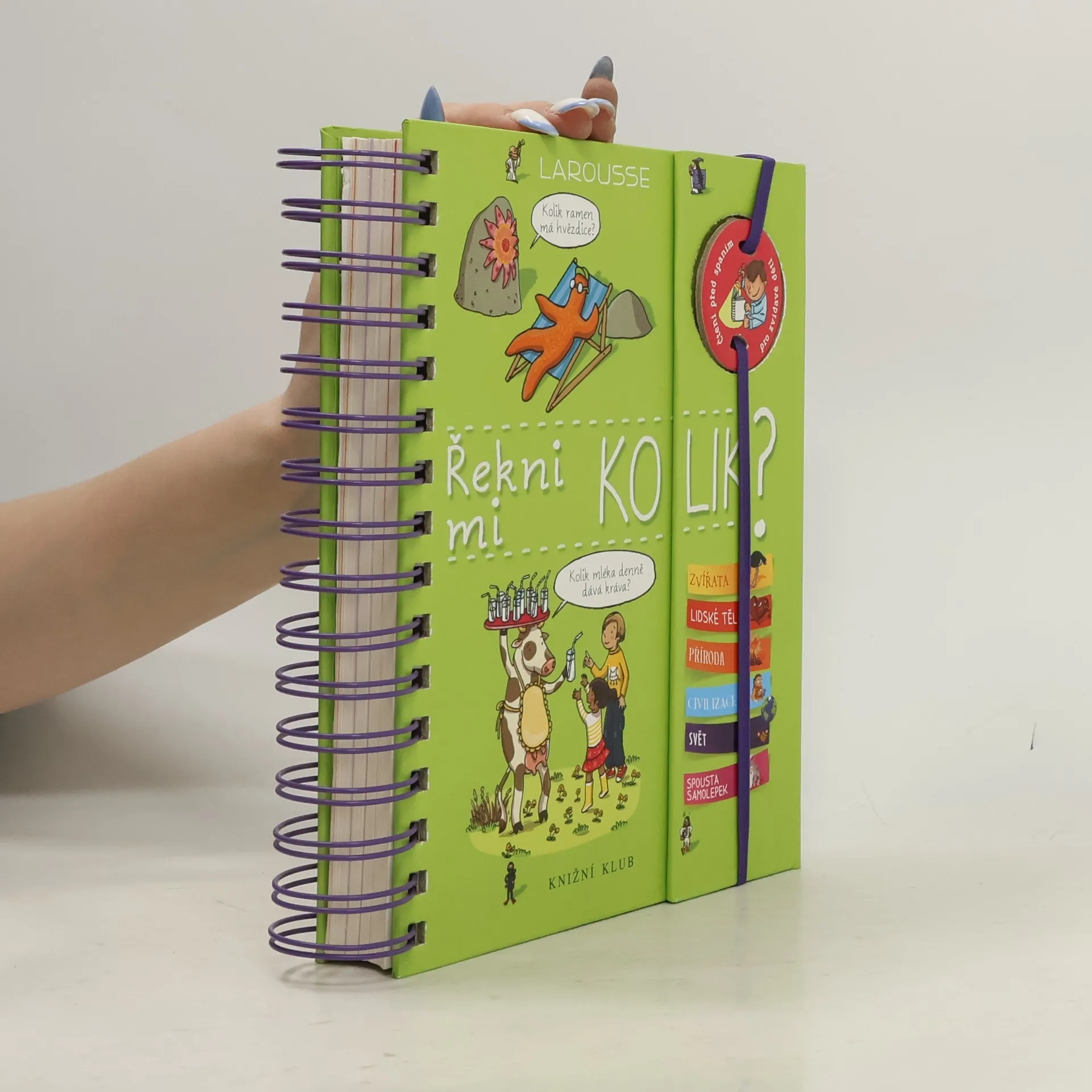 Další ze série oblíbených encyklopedií pro zvídavé děti odpovídá na 212 všetečných otázek – tentokrát na téma „kolik čeho je“. Kolik máme zubů? Kolik let je Země na světě? Kolik teček má beruška na krovkách? Otázky i odpovědi jsou rozdělené na pět oblastí: zvířata, lidské tělo, přírodní svět, civilizace a Země. V knížce s praktickou spirálovou vazbou jako obvykle nechybí ani samolepky a půvabné ilustrace.