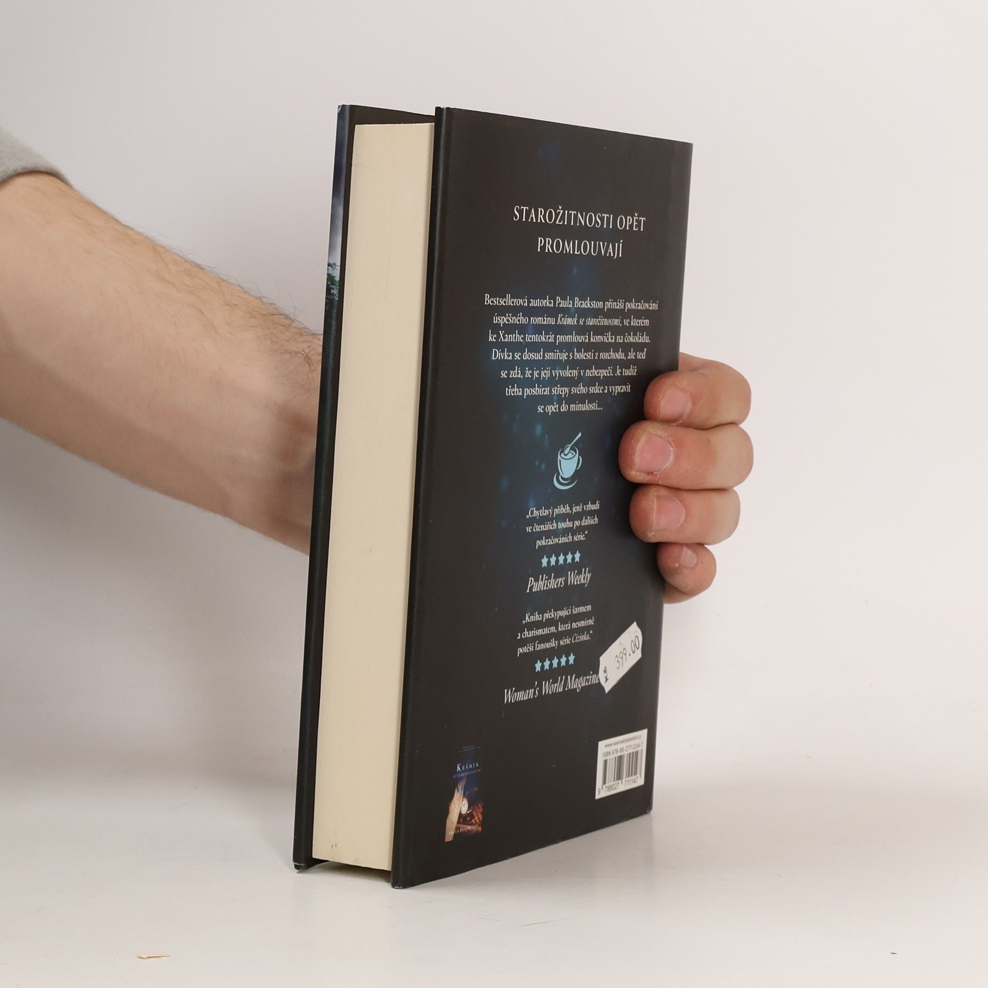 Paula Brackston přináší pokračování úspěšného románu Krámek se starožitnostmi. Po svých dobrodružstvích v sedmnáctém století se Xanthe pokouší žít zase běžný život v Marlborough. Není snadné zapomenout na Samuela, ale dělá vše pro to, aby přijala skutečnost, že spolu nemohou být, neboť každý patří do jiného století. Místo toho se soustředí na Floru a jejich společný obchod. Nelze však popřít její zvláštní spojení se starožitnostmi, které se jí svěřují s tajemstvími a chtějí po ní, aby cestovala časem a pomáhala lidem v nesnázích. Když k ní během hledání nového zboží začne zpívat konvička na čokoládu a vyvolá v Xanthe vizi, ve které je Samuel v nebezpečí, není možné jen tak nečinně sedět. Xanthe se navzdory rizikům rozhodne vydat na další cestu do minulosti, přestože to obnáší další lhaní matce a nejistotu, zda se bezpečně vrátí. Nejen, že se během svého dobrodružství setká s velmi silným protivníkem, ale také pochopí, jaký jí byl svěřen osud. Bude schopna vrátit se zpět? A bude schopna zachránit Samuela, když se sama ocitla v obrovském nebezpečí?