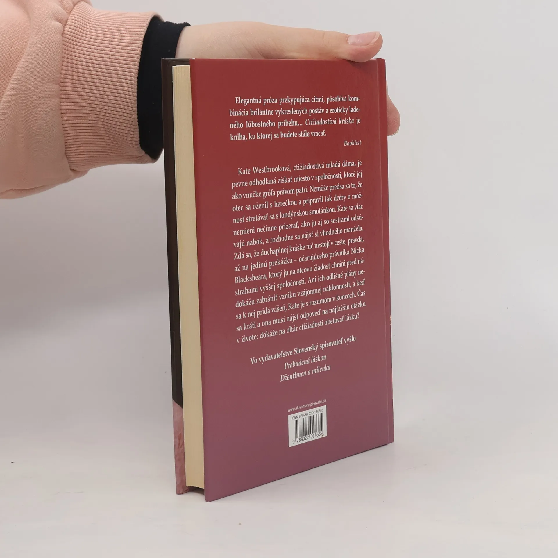 Očarujúci eroticky ladený ľúbostný príbeh. Kate Westbrooková, ctižiadostivá mladá dáma, je pevne odhodlaná získať miesto vo vyššej spoločnosti, ktoré jej ako vnučke grófa právom patrí, a nájsť si vhodného manžela. Zdá sa, že duchaplnej kráske nič nestojí v ceste – pravda, až na príťažlivého právnika Nicka Blacksheara, ktorý ju na otcovu žiadosť chráni pred nástrahami londýnskej smotánky. Ani ich odlišné plány však nezabránia vzniku vzájomnej náklonnosti, a keď sa k nej pridá vášeň, Kate je s rozumom v koncoch. Čas sa kráti a ona musí nájsť odpoveď na najťažšiu otázku v živote: dokáže na oltár ctižiadosti obetovať lásku?