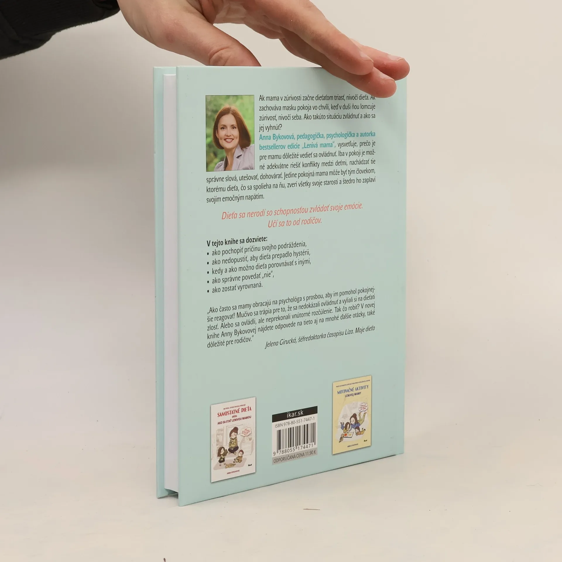 Vydavateľstvo IKAR prináša už štvrtú knihu z bestsellerovej edície Lenivá mama. Autorka Anna Bykovová je pedagogička a psychologička s mnohoročnými skúsenosťami nadobudnutými v ambulancii detského poradenstva a rodinnej terapie, ale aj pri výchove vlastných detí. Práve preto jej cenné rady ponúkajú konkrétnu, mnohonásobne overenú a preverenú praktickú pomoc. Výklad ilustrujú príklady z tých najbežnejších situácií, ktoré dobre pozná každá rodina s deťmi – situácie podfarbené nedostatkom času, nedostatkom spánku, fyzických i duševných síl. Ako z tohto kruhu von, bez ujmy na zdraví dieťaťa či rodiča? Kniha Tajomstvo spokojnosti „lenivej mamy“ by mohla mať aj podtitul S humorom o vážnych veciach. Smelo sa začítajte a vďaka vtipnému nadhľadu zistíte, že riešenie rodinných ťažkostí a rébusov nemusí byť v nedohľadne. Zistíte, že vy sami ste oveľa lepší rodičia, ako si o sebe myslíte, a že vy sami sa dokážete postarať o to, aby bola u vás doma pokojnejšia, láskyplnejšia a tvorivejšia atmosféra.