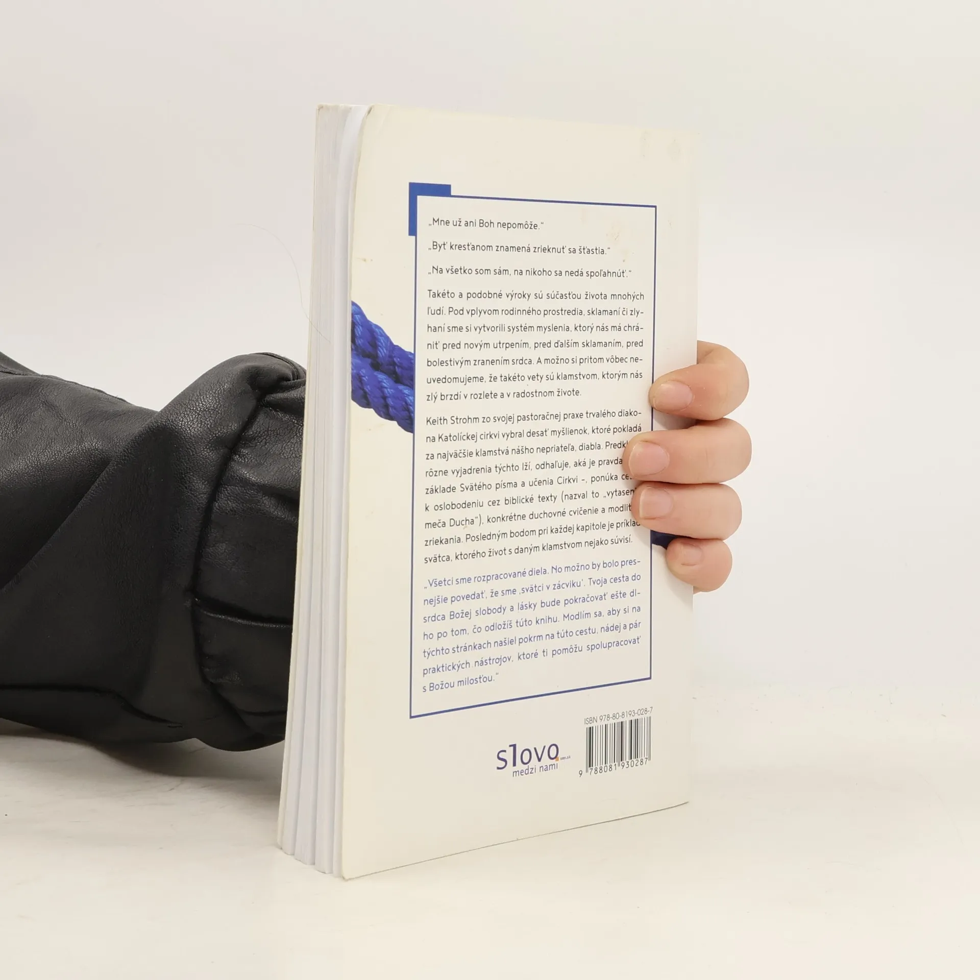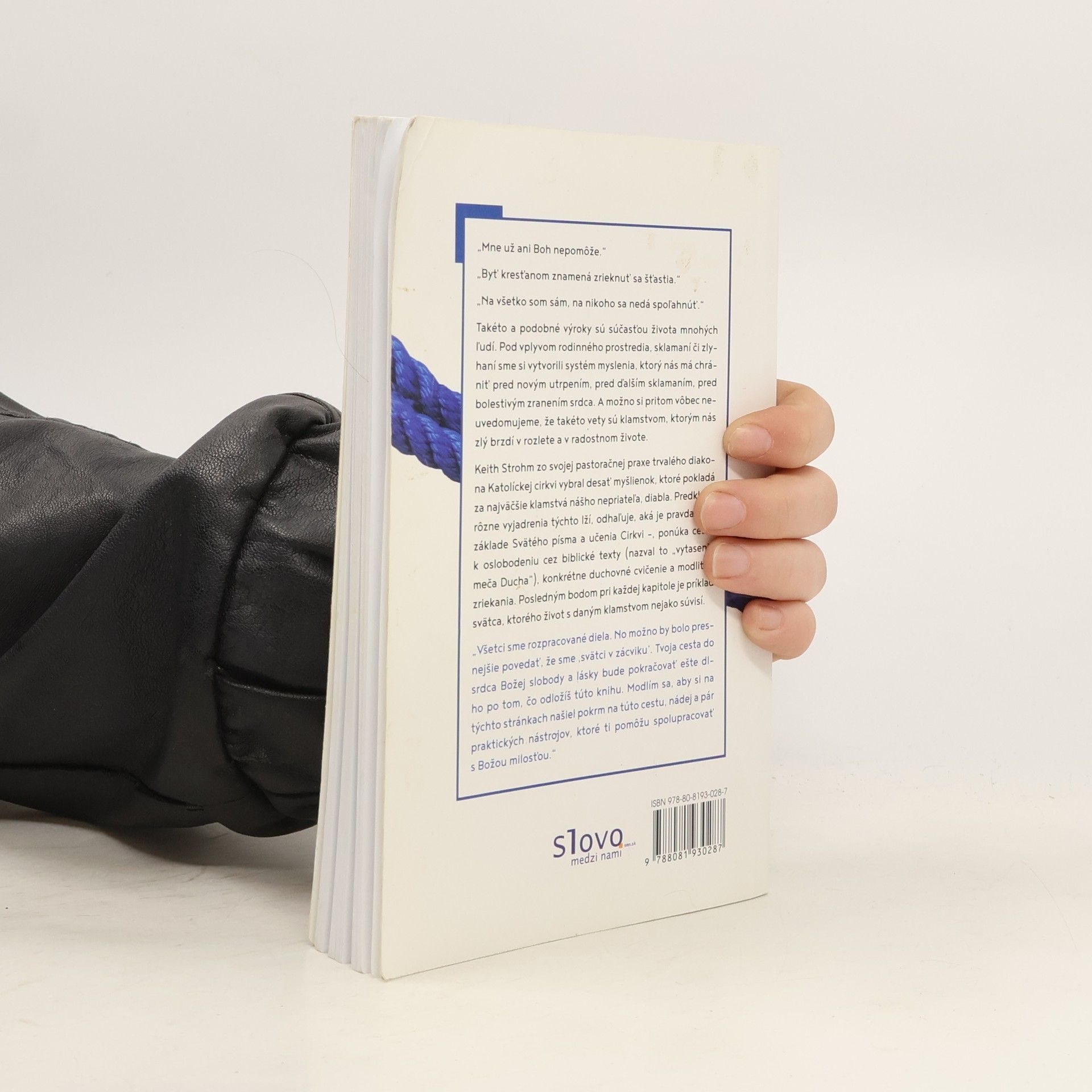 Mne už ani Boh nepomôže.Byť kresťanom znamená zrieknuť sa šťastia.Na všetko som sám, na nikoho sa nedá spoľahnúť.Takéto a podobné výroky sú súčasťou života mnohých ľudí. Pod vplyvom rodinného prostredia, sklamaní či zlyhaní sme si vytvorili systém myslenia, ktorý nás má chrániť pred novým utrpením, pred ďalším sklamaním, pred bolestivým zranením srdca. A možno si pritom vôbec neuvedomujeme, že takéto vety sú klamstvom, ktorým nás zlý brzdí v rozlete a v radostnom živote.Keith Strohm zo svojej pastoračnej praxe trvalého diakona Katolíckej cirkvi vybral desať myšlienok, ktoré pokladá za najväčšie klamstvá nášho nepriateľa, diabla. Predkladá rôzne vyjadrenia týchto lží, odhaľuje, aká je pravda na základe Svätého písma a učenia Cirkvi , ponúka cestu k oslobodeniu cez biblické texty (nazval to vytasenie meča Ducha), konkrétne duchovné cvičenie a modlitbu zriekania. Posledným bodom pri každej kapitole je príklad svätca, ktorého život s daným klamstvom nejako súvisí.Všetci sme rozpracované diela. No možno by bolo presnejšie povedať, že sme svätci v zácviku. Tvoja cesta do srdca Božej slobody a lásky bude pokračovať ešte dlho po tom, čo odložíš túto knihu. Modlím sa, aby si na týchto stránkach našiel pokrm na túto cestu, nádej a pár praktických nástrojov, ktoré ti pomôžu spolupracovať s Božou milosťou.