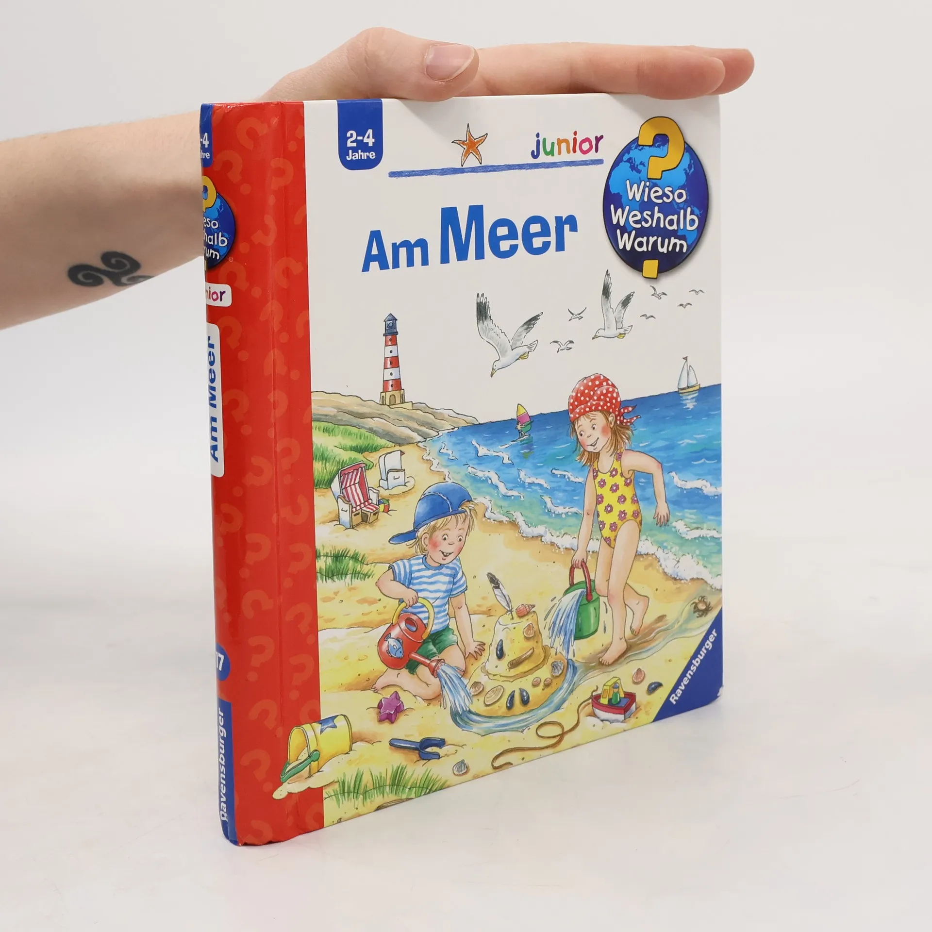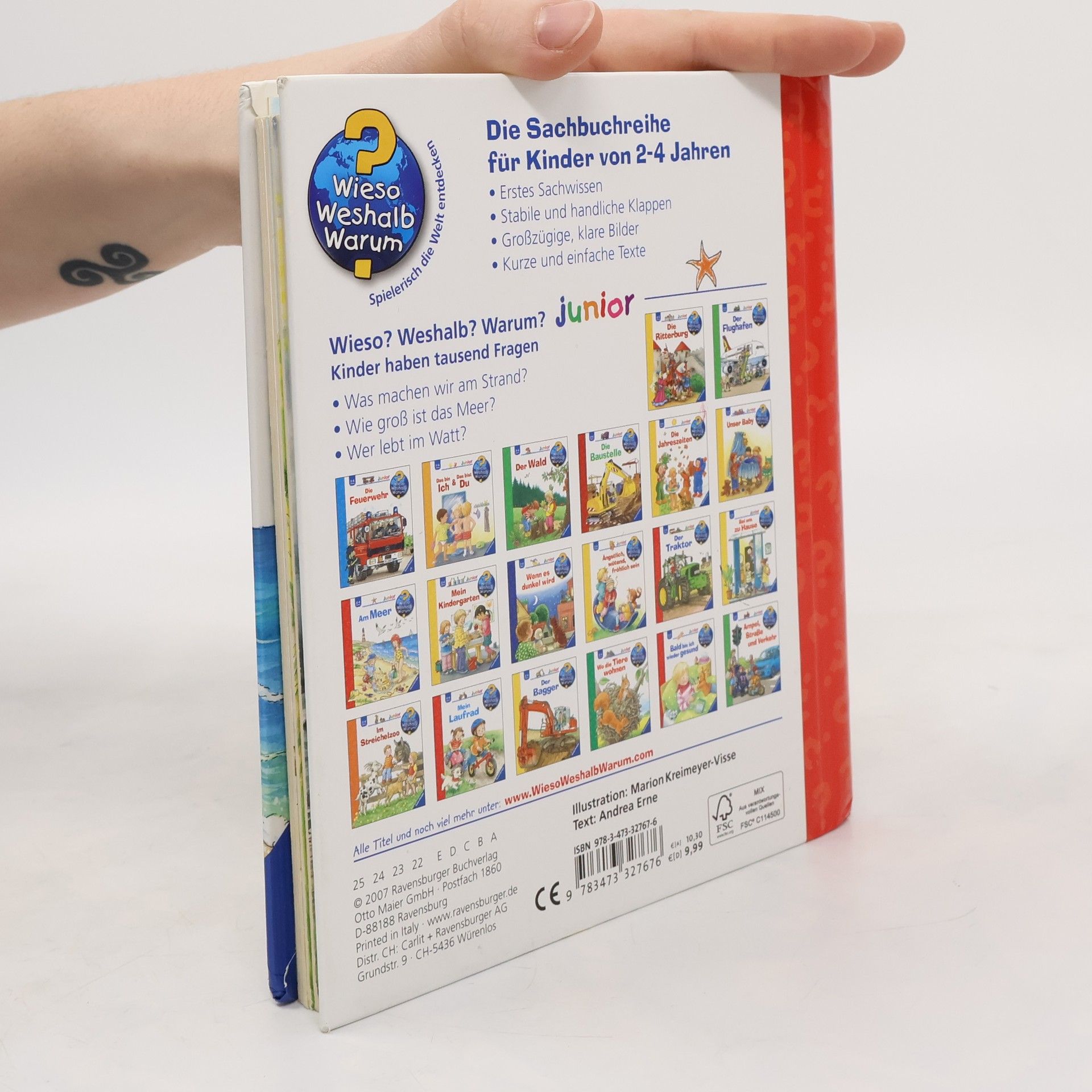 Hurra, Urlaub am Meer! Schon die Kleinsten lieben es, stundenlang im Sand zu buddeln, Muscheln zu sammeln und im flachen Wasser zu planschen. In diesem Buch wird der Lebensraum Meer genau unter die Lupe genommen: Welche Tiere leben im Watt? Was kann man in den Dünen entdecken? Und was passiert bei einem Sturm? Kleine Land- und Wasserratten erhalten die Antworten auf all ihre Fragen rund um Nord- und Ostsee. Wieso? Weshalb? Warum? junior Die Sachbuchreihe für Kinder von 2-4 Jahren Jeden Tag entdecken Kinder etwas Neues – und haben viele Fragen. Wann kommt die Feuerwehr? Was machen die Tiere im Winter? Warum muss ich Zähne putzen? Die beliebte Sachbuchreihe Wieso? Weshalb? Warum? junior beantwortet die Fragen der Kinder auf Augenhöhe. Sie beleuchtet unterschiedlichste Themen aus ihrer Alltags- und Interessenswelt altersgerecht und mit viel Liebe zum Detail. Die Reihe ist speziell auf kleine Hände und die Bedürfnisse der Kleinsten angepasst. Klare und liebevolle Bilder, kurze Sachtexte sowie handliche Klappen, die Bewegungen veranschaulichen und überraschende und lustige Einblicke gewähren, ermöglichen Kindern, sich ihre Themen selbst zu erschließen. Der Spaß am eigenhändigen Entdecken, die liebevolle Umsetzung und die hochwertige Ausstattung garantieren langanhaltende Freude an jedem Buch.