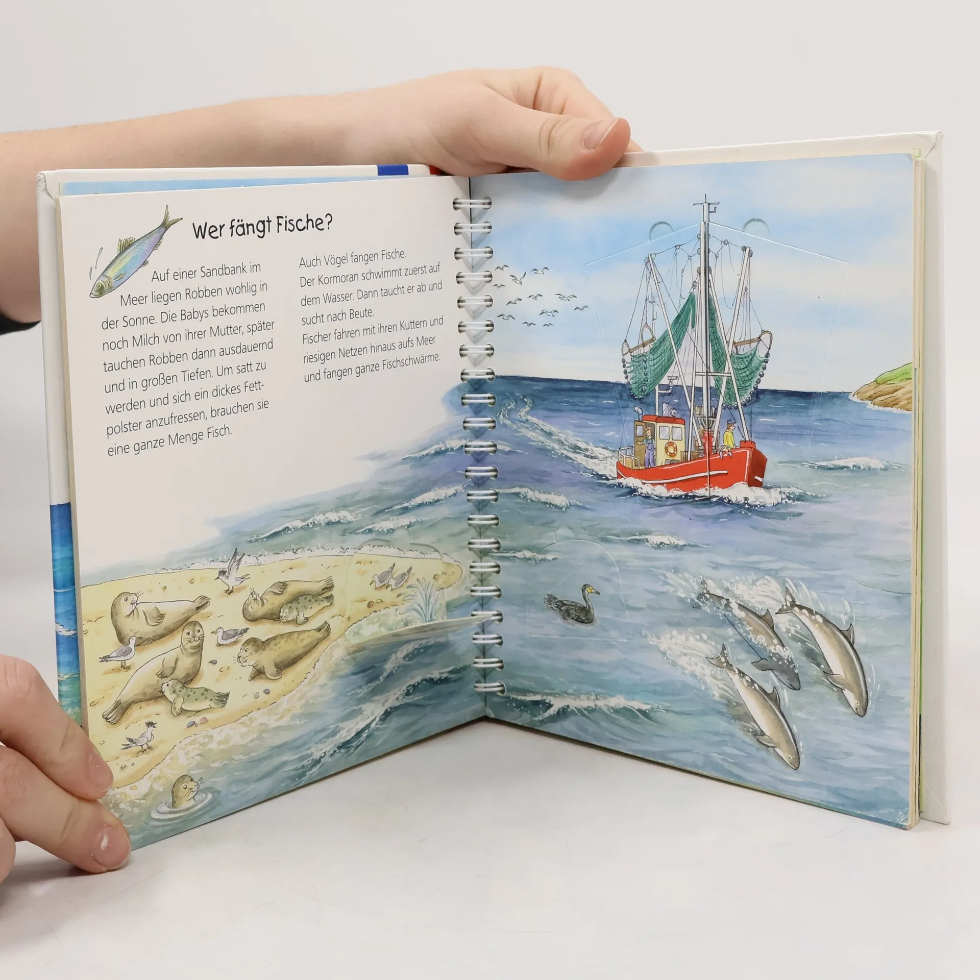 Das Buch hat wie bei dieser Reihe üblich eine Spiralbindung und es gibt viele Klappen und Aufklappbilder. Thematisiert wird hier nicht nur das Meer sondern auch das Watt, Dünen und der Strand. Ich würde sagen es ist kein direktes Vorlesebuch sondern geht fast schon in die Richtung Sachbuch. Meine Tochter mag es aber vielleicht gerade deshalb sehr gern .