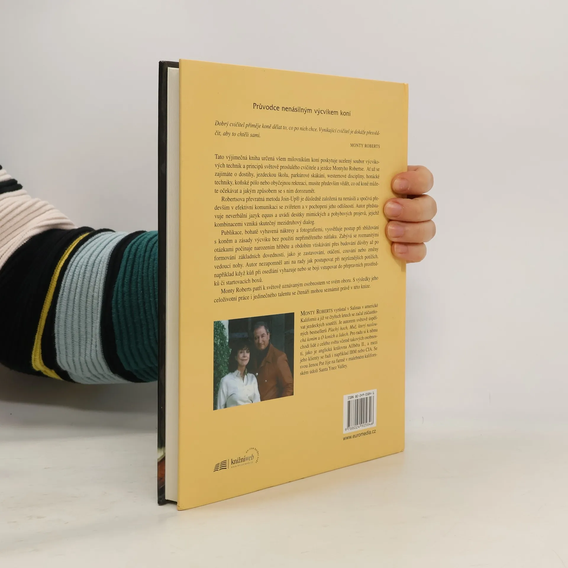 Dobrý cvičitel přiměje koně dělat to, co po něm chce. Vynikající cvičitel je dokáže přesvědčit, aby to chtěli sami. Tato výjimečná kniha určená milovníkům koní nabízí soubor výcvikových technik a principů od světově proslulého cvičitele a jezdce Montyho Robertse. Bez ohledu na to, zda se zajímáte o dostihy, jezdeckou školu, parkúrové skákání, westernové ježdění nebo rekreaci, je důležité vědět, co od koně očekávat a jak s ním komunikovat. Robertsova metoda Join-Up® je založena na nenásilí a efektivní komunikaci se zvířetem. Autor představuje neverbální jazyk equus a desítky mimických a pohybových projevů, které umožňují mezidruhový dialog. Publikace, bohatě ilustrovaná nákresy a fotografiemi, vysvětluje postup při sbližování s koněm a zásady výcviku bez nepřiměřeného nátlaku či násilí. Zabývá se otázkami od narození hříběte a období vtiskávání po budování důvěry a formování základních dovedností, jako je zastavování, otáčení či změny tempa. Autor také poskytuje rady pro řešení různých potíží, jako je vyhazování při osedlání nebo strach z přepravních prostředků. Monty Roberts je uznávanou osobností ve svém oboru, a výsledky jeho celoživotní práce se čtenáři mohou seznámit právě v této knize.