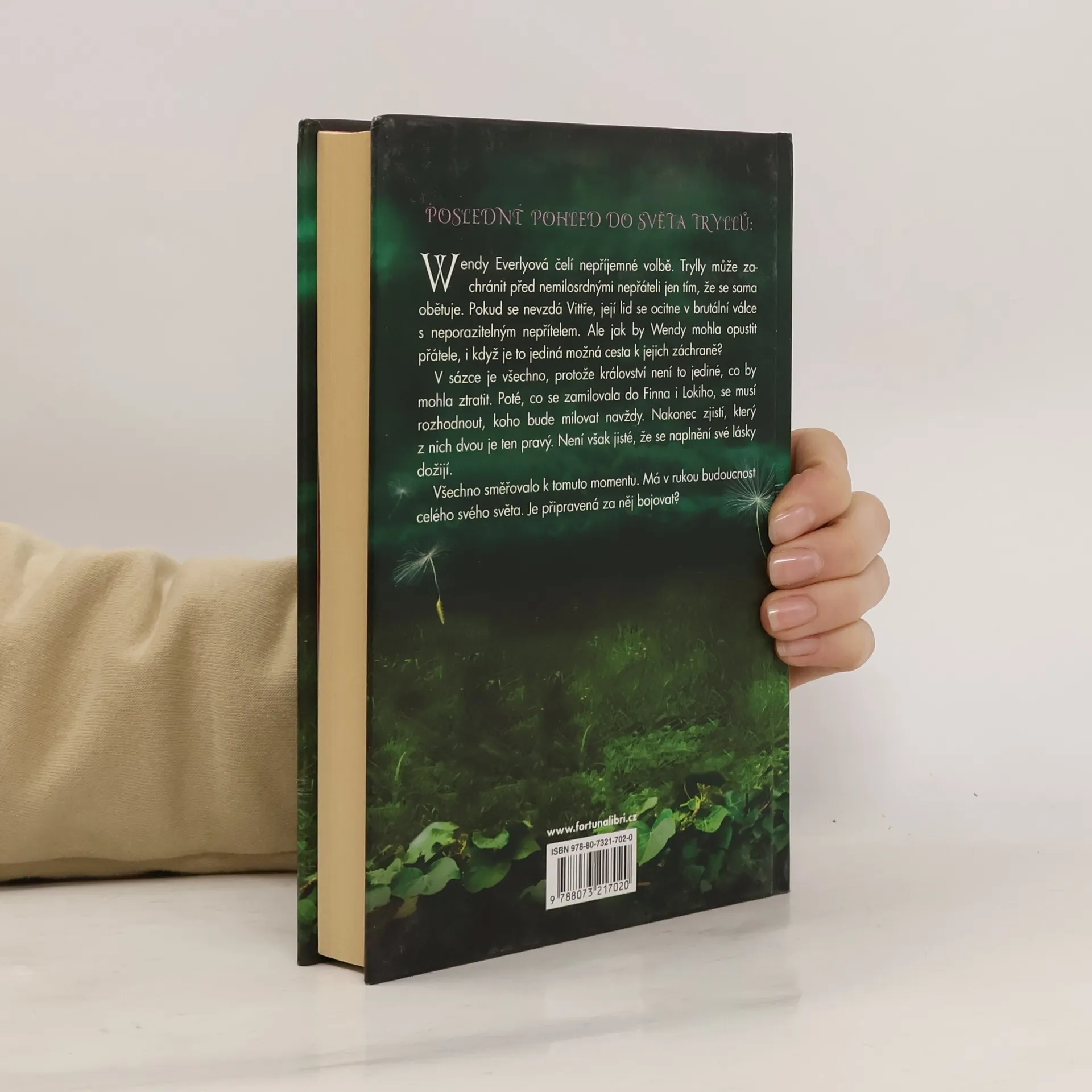 Závěrečná kniha trilogie Svět Tryllů. Wendy Everlyová čelí nepříjemné volbě. Trylly může zachránit před nemilosrdnými nepřáteli jen tím, že se sama obětuje. Pokud se nevzdá Vittře, její lid se ocitne v brutální válce s neporazitelným nepřítelem. Ale jak by Wendy mohla opustit přátele, i když je to jediná možná cesta k jejich záchraně? V sázce je všechno, protože království není to jediné, co by mohla ztratit. Poté, co se zamilovala do Finna i Lokiho, se musí rozhodnout, koho bude milovat navždy. Nakonec zjistí, který z nich dvou je ten pravý. Není však jisté, že se naplnění své lásky dožijí. Všechno směřovalo k tomuto momentu. Má v rukou budoucnost celého svého světa. Je připravená za něj bojovat? 1. vydání. -- zdroj: legie.info --