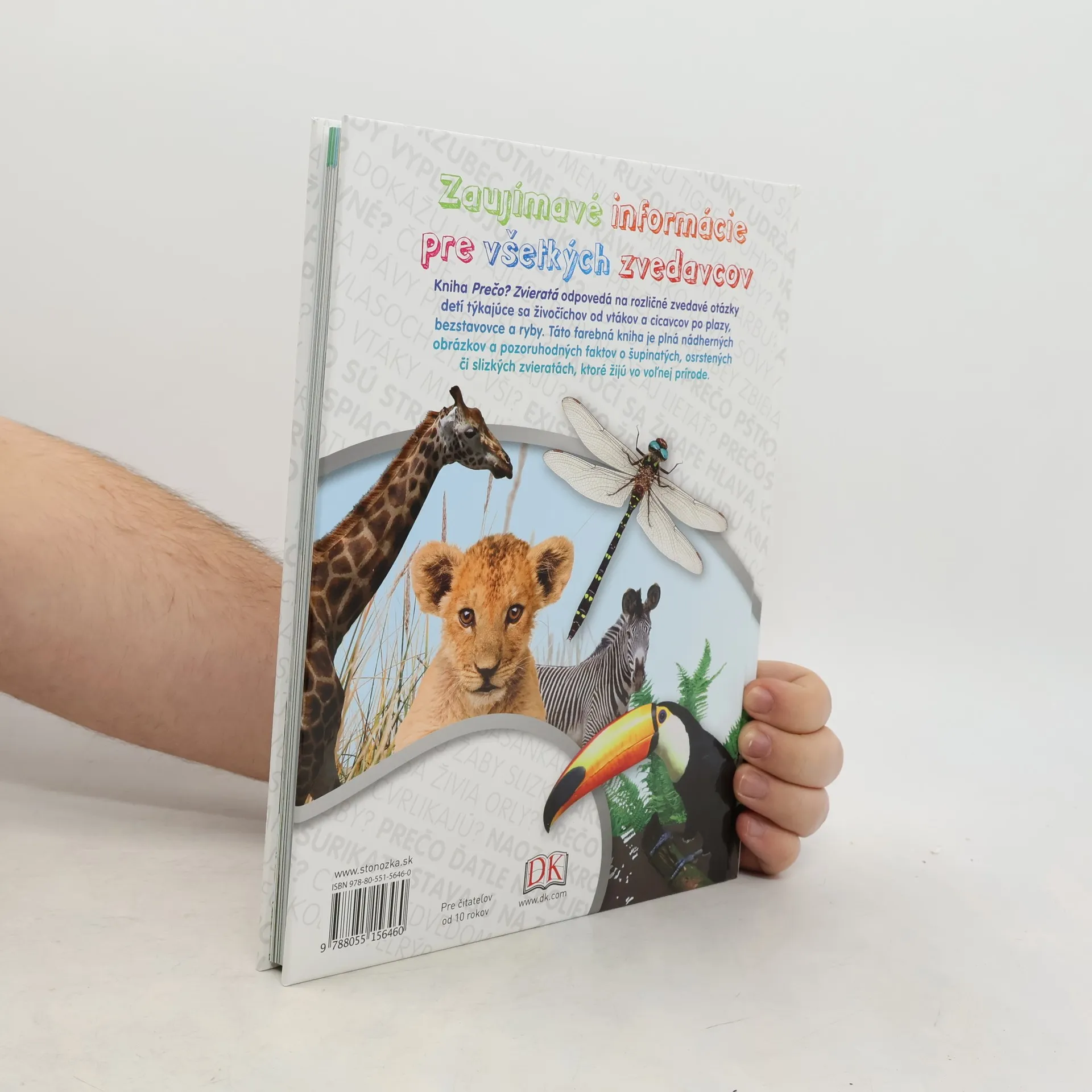 Kniha Prečo? Zvieratá odpovedá na rozličné zvedavé otázky detí týkajúce sa živočíchov od vtákov a cicavcov po plazy, bezstavovce a ryby. Táto farebná kniha je plná nádherných obrázkov a pozoruhodných faktov o šupinatých, osrstených či slizkých zvieratách, ktoré žijú vo voľnej prírode.