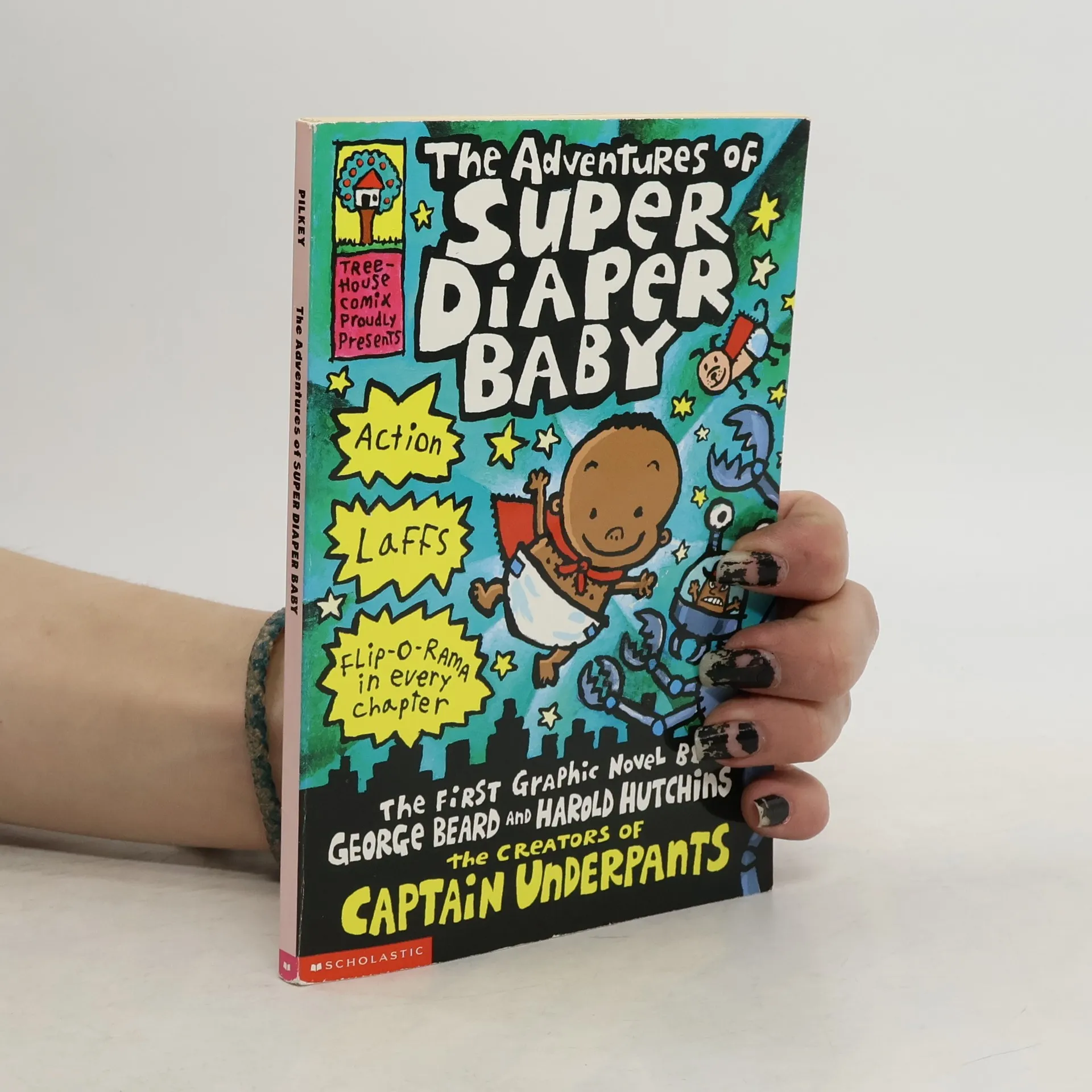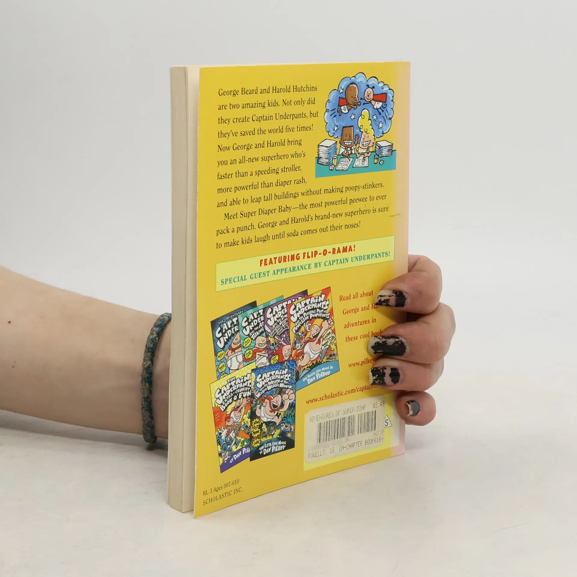 The first epic novel by George and Harold, the co-stars of Dav Pilkey's mega-bestselling Captain Underpants series. Now with super-cool foil covers! Shiny! Fun!Oh, no! It's not enough that George and Harold have invented Captain Underpants, the greatest superhero of all time, and that they've also saved the world FIVE times! They defeated Dr. Diaper! They punished Professor Poopypants! And they whacked the wicked Wedgie Woman! What task could be worse?!!?This one: As punishment, the boys have to write a 100-page report on "good citizenship," and they have been specifically ordered NOT to write another comic about Captain Underpants. So what do they do?Aha! Meet Super Diaper Baby--the most powerful peewee to pack a punch. With Pilkey's typical over-the-edge humor, Super Diaper Baby will have kids laughing until soda comes out their noses.