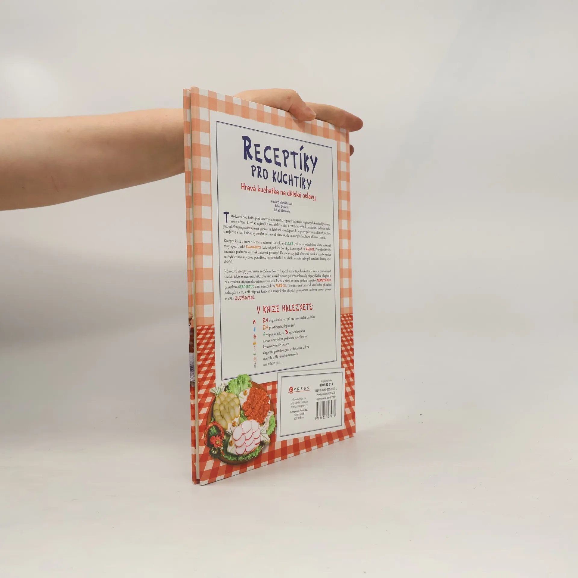 Tato kuchařská kniha plná barevných fotografií, vtipných ilustrací a napínavých komiksů je určena všem dětem, které se zajímají o kuchařské umění a chtěly by svým kamarádům, rodičům nebo prarodičům připravit zajímavé pohoštění. Recepty v knize zahrnují jak pokrmy slané, tak isladkosti a nápoje.