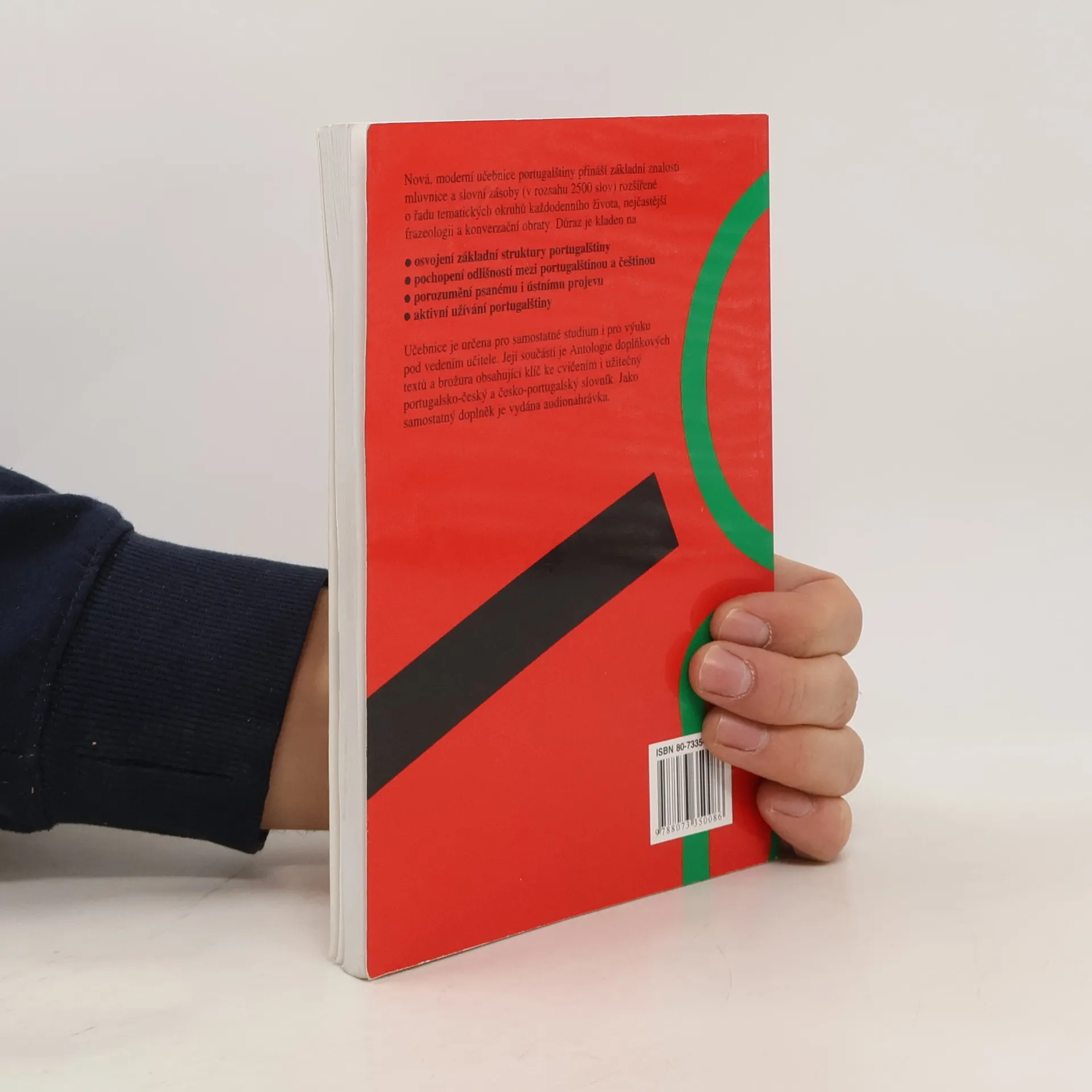 Učebnici určenou jak pro samostatné studium, tak pro výuku pod vedením učitele, tvoří 31 lekcí plus lekce úvodní se zásadami výslovnosti. Je zaměřena na evropskou portugalštinu a hlavními odlišnostmi portugalštiny brazilské se zabývá pouze ve dvou závěrečných lekcích. Každá lekce se skládá z úvodních textů, slovníčku k lekci (základního a doplňkového), mluvnického výkladu a řady cvičení s klíčem. Do učebnice je začleněna též Antologie doplňkových textů. Studující mají k dispozici portugalsko-český slovník, který obsahuje základní slovní zásobu učebnice (2 500 slov), i slovník česko-portugalský (stejného rozsahu).