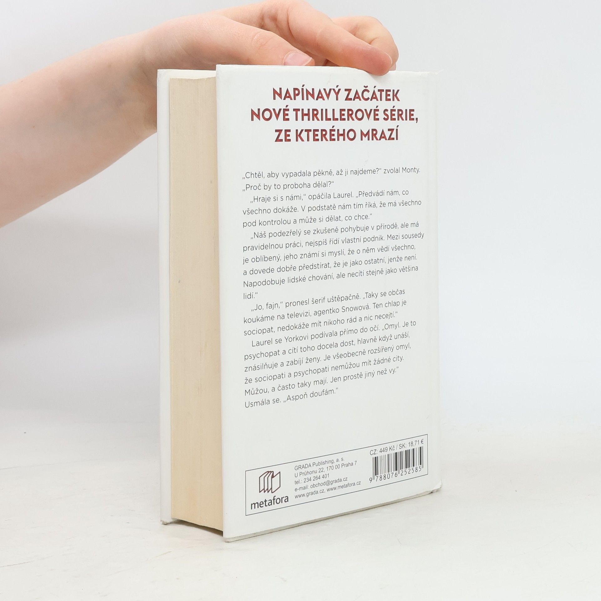 Zvláštní agentka FBI Laurel Snowová si předvánoční čas představovala docela jinak, ale když se v horách u jejího rodného města ve státě Washington najdou stopy řádění sériového vraha, rozhodne se vyrazit na místo činu a pustit se do pátrání. Svérázná mladá žena s výjimečnou pamětí, která z domova coby zázračné dítě odešla už v jedenácti letech na univerzitu, se díky znalostem psychologie pokouší vžít do myšlení násilníka, jenž se skrývá mezi spořádanými občany horského městečka. Pátrání jí komplikuje nejen drsné zimní počasí, ale také stíny vlastní minulosti a nekontrolovatelná přitažlivost, kterou pociťuje k Hucku Riversovi, bývalému vojákovi a rangerovi, který se stal proti své vůli jejím parťákem ve vyšetřování.