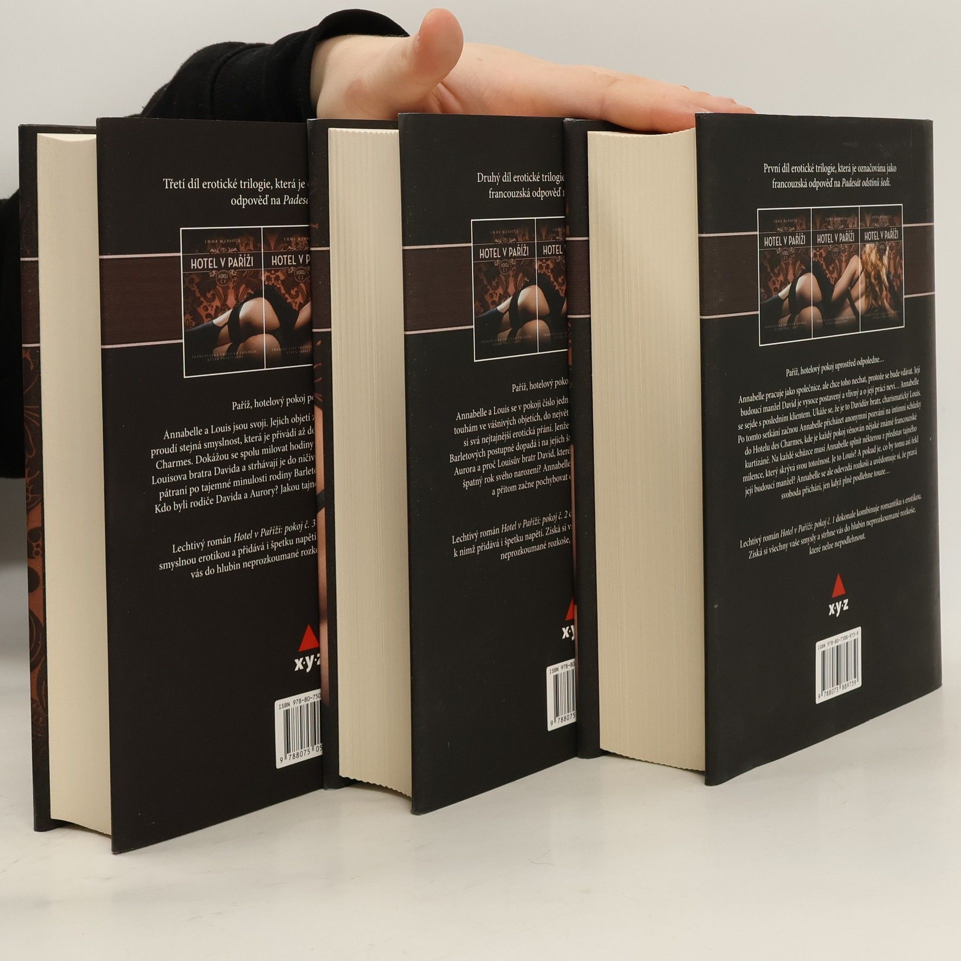 Všechny tři díly jedné z nejoblíbenějších erotických trilogií, která je považována za francouzskou odpověď na Fifty Shades v dárkovém boxu. Přečtěte si příběh Annabelle a Louise, poznejte jejich vášnivá objetí a zjistěte, že v žilách jim proudí obrovská smyslnost, která je přivádí do důvěrně známých pokojů v Hotelu des Charmes.