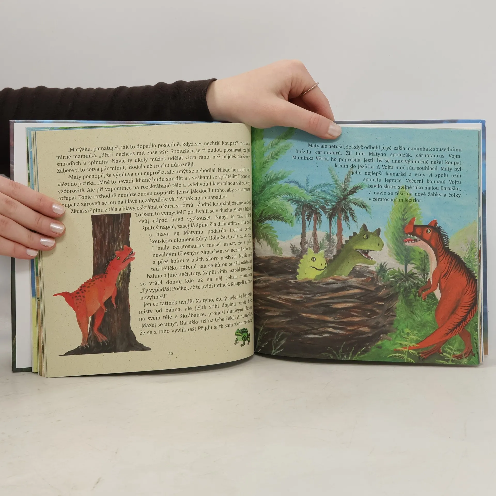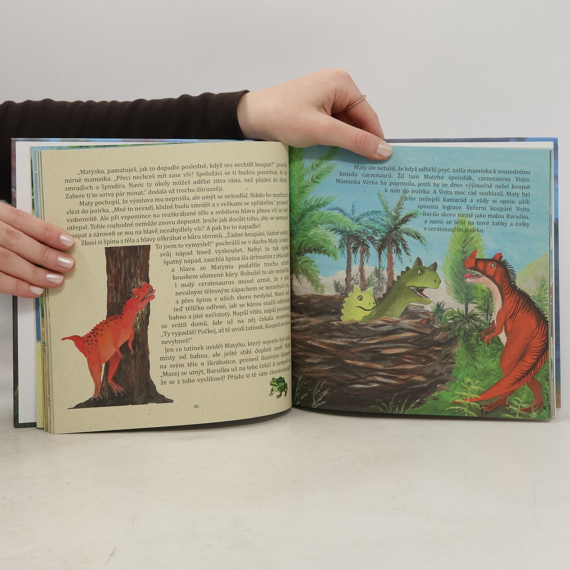 Co se přihodilo dinosauřím mláďatům? Jaká dobrodružství zažili kamarádi ze správné pětky? A proč se ceratosaurus nechtěl koupat? To vše a mnoho dalšího zjistí malí i velcí čtenáři v krátkých a napínavých příbězích o dinosaurech.Dinofandové se seznámí s obrovskými i drobnými, masožravými i býložravými, suchozemskými, vodními i létajícími prehistorickými ještěry, kteří kdysi obývali naši Zemi.Knížka „Dinopohádky“ obsahuje nádherné výpravné ilustrace i jmenný rejstřík dinosaurů, takže se rodiče nemusí bát, že nebudou umět při čtení dobrodružných příběhů odpovědět na všetečné otázky svých zvídavých dětí.Dinosauří mláďata zažívají radosti i strasti podobné těm lidským. A bez obav, i na poučení občas dojde.