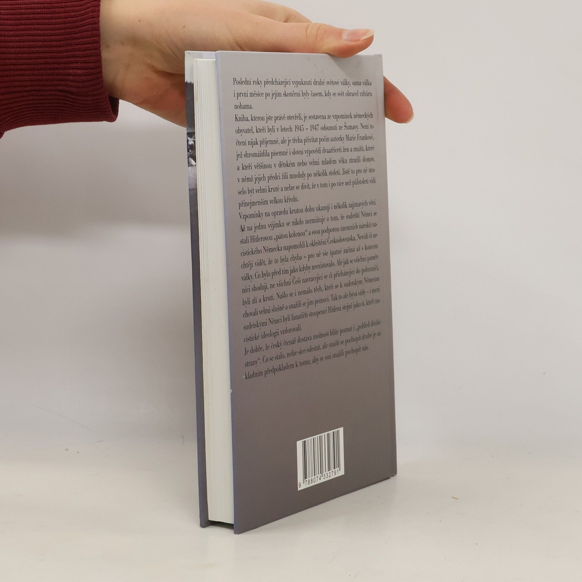 Poslední roky před vypuknutím druhé světové války a její první měsíce po skončení byly obdobím velkých změn. Kniha, kterou držíte v ruce, je souborem vzpomínek německých obyvatel, kteří byli v letech 1945–1947 odsunuti ze Šumavy. Autorka Marie Franková shromáždila příběhy třiceti dvou žen a mužů, kteří v dětském nebo mladém věku přišli o domov, v němž jejich předci žili po staletí. Jejich vzpomínky odhalují krutosti této doby a ukazují, jak i po více než půlstoletí pociťují velkou křivdu. Zajímavé je, že až na jednu výjimku se pamětníci nezmiňují o tom, že sudetští Němci byli Hitlerovou „pátou kolonou“ a podporovali územní nároky nacistického Německa, což vedlo k okleštění Československa. Pro ně začíná veškeré zlo až s koncem války, jako by předchozí události neexistovaly. Nicméně, jak se shodují, ne všichni Češi, kteří se vraceli do pohraničí, byli zlí; mnozí se snažili sudetským Němcům pomoci. Mezi sudetskými Němci byli jak fanatičtí stoupenci Hitlera, tak ti, kteří se mu postavili. Je důležité, aby český čtenář poznal i „pohled druhé strany“; porozumění je klíčové pro vzájemné pochopení.