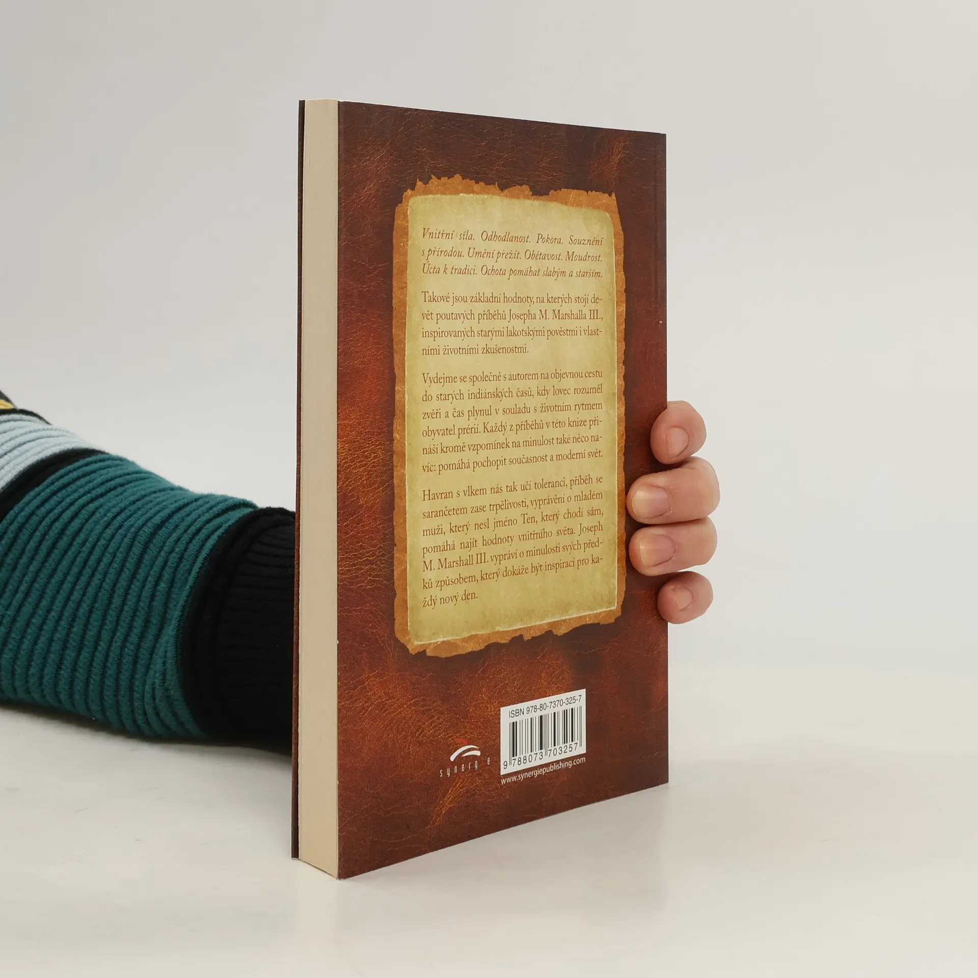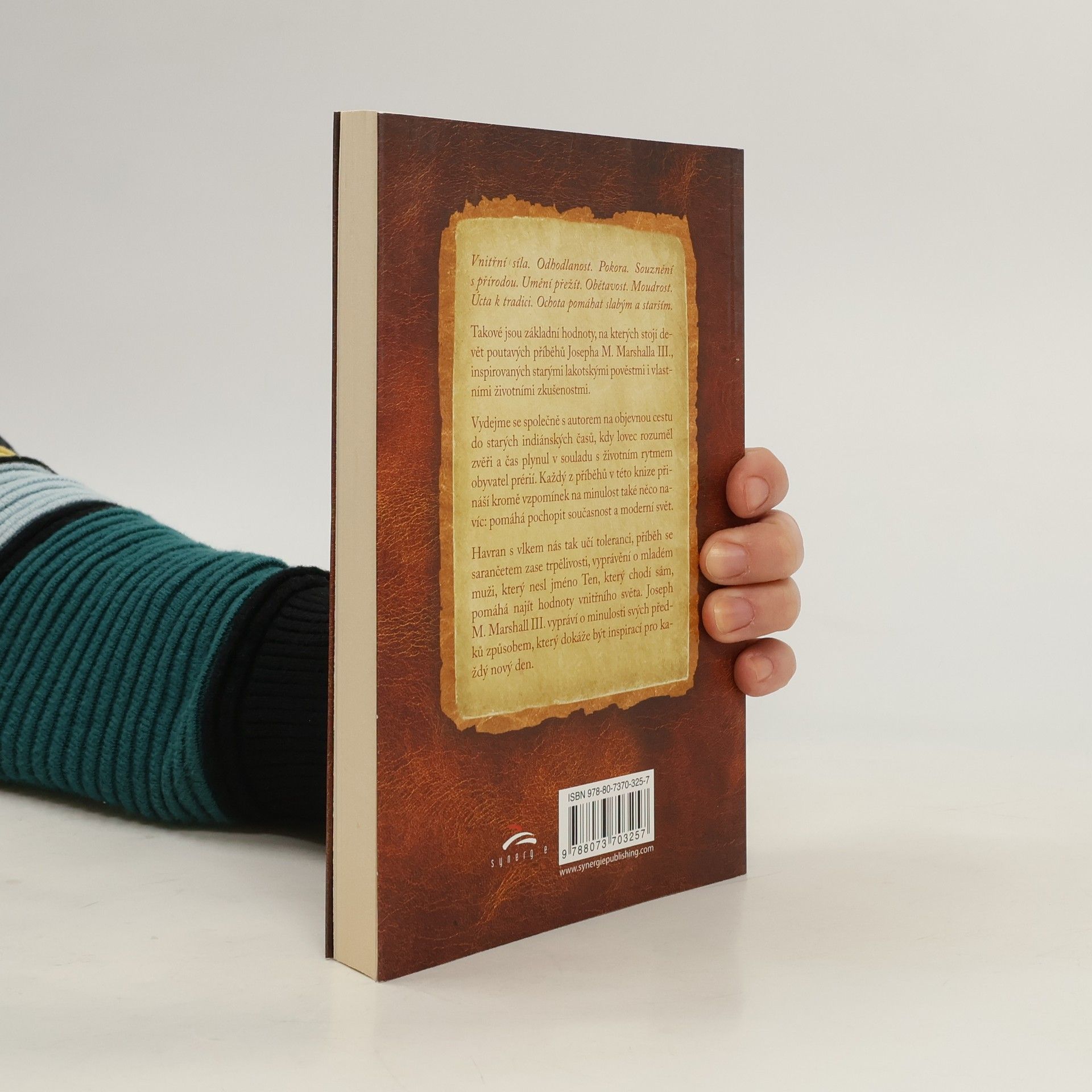 Vnitřní síla. Odhodlanost. Pokora. Souznění s přírodou. Umění přežít. Obětavost. Moudrost. Úcta k tradici. Ochota pomáhat slabým a starším. Takové jsou základní hodnoty, na kterých stojí devět poutavých příběhů Josepha M. Marshalla III., inspirovaných starými lakotskými pověstmi i vlastními životními zkušenostmi. Vydejme se společně s autorem na objevnou cestu do starých indiánských časů, kdy lovec rozuměl zvěři a čas plynul v souladu s životním rytmem obyvatel prérií. Každý z příběhů v této knize přináší kromě vzpomínek na minulost také něco navíc: pomáhá pochopit současnost a moderní svět. Havran s vlkem nás tak učí toleranci, příběh se sarančetem zase trpělivosti, vyprávění o mladém muži, který nesl jméno Ten, který chodí sám, pomáhá najít hodnoty vnitřního světa. Joseph M. Marshall III. vypráví o minulosti svých předků způsobem, který dokáže být inspirací pro každý nový den.