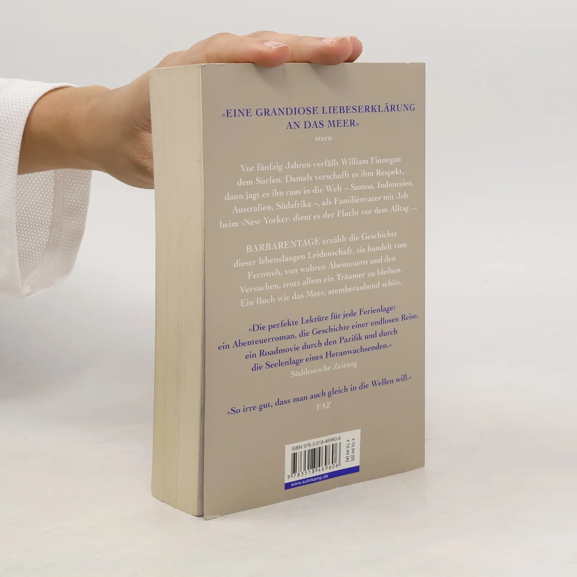 Vor fünfzig Jahren verfällt William Finnegan dem Surfen. Damals verschafft es ihm Respekt, dann jagt es ihn raus in die Welt – Samoa, Indonesien, Australien, Südafrika –, als Familienvater mit Job beim New Yorker dient es der Flucht vor dem Alltag … Barbarentage erzählt die Geschichte dieser lebenslangen Leidenschaft, sie handelt vom Fernweh, von wahren Abenteuern und den Versuchen, trotz allem ein Träumer zu bleiben. Ein Buch wie das Meer, atemberaubend schön.