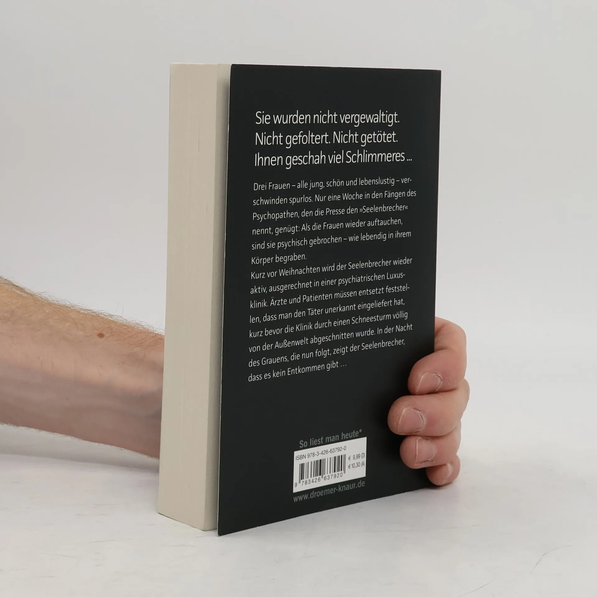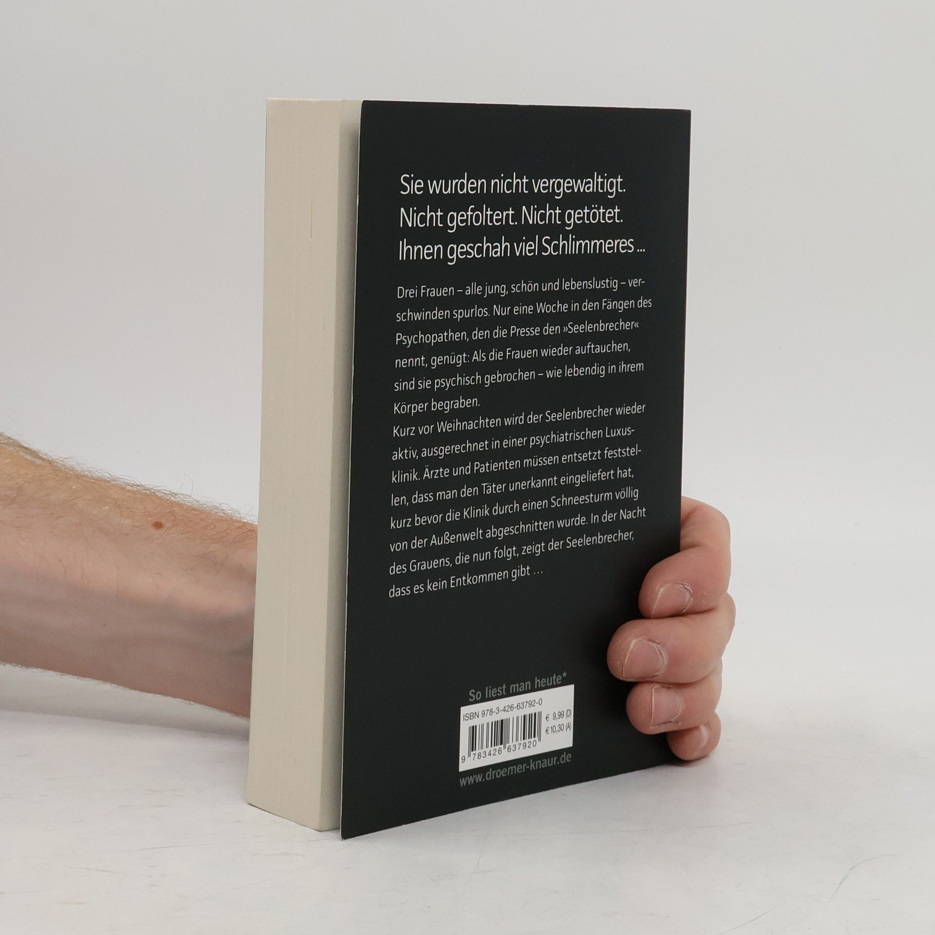 Sebastian Fitzek auf Nervenkitzel-Kurs: Sein bisher härtester Psychothriller! Sie wurden nicht vergewaltigt. Nicht gefoltert. Nicht getötet. Ihnen geschah viel Schlimmeres ... Drei Frauen – alle jung, schön und lebenslustig – verschwinden spurlos. Nur eine Woche in den Fängen des Psychopathen, den die Presse den »Seelenbrecher« nennt, genügt: Als die Frauen wieder auftauchen, sind sie psychisch gebrochen – wie lebendig in ihrem Körper begraben. Kurz vor Weihnachten wird der Seelenbrecher wieder aktiv, ausgerechnet in einer psychiatrischen Luxusklinik. Ärzte und Patienten müssen entsetzt feststellen, dass man den Täter unerkannt eingeliefert hat, kurz bevor die Klinik durch einen Schneesturm völlig von der Außenwelt abgeschnitten wurde. In der Nacht des Grauens, die nun folgt, zeigt der Seelenbrecher, dass es kein Entkommen gibt … Mit psychologischer Raffinesse und atemberaubender Spannung entführt Sebastian Fitzek seine Leser in die dunklen Abgründe der menschlichen Seele.