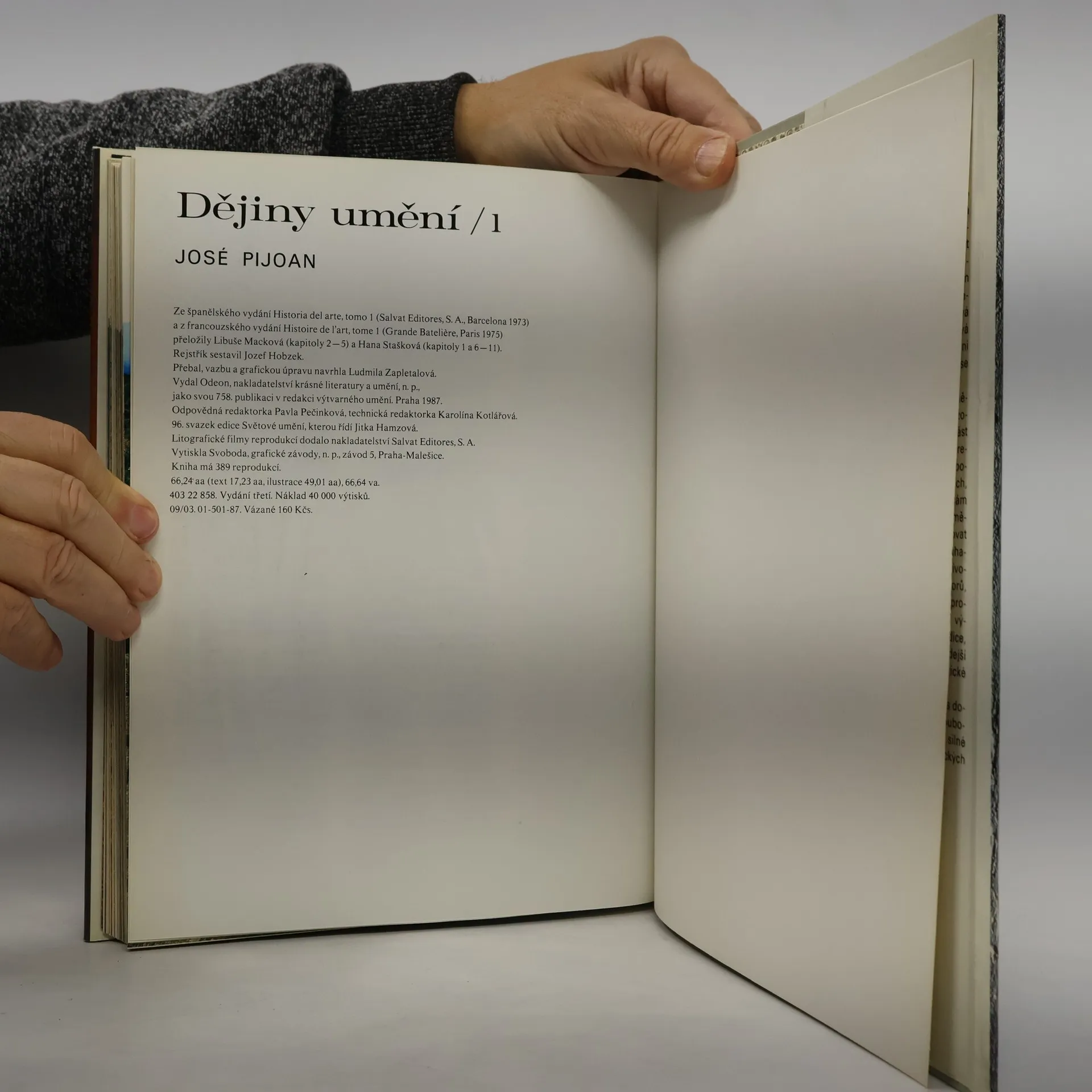 Toto rozsáhlé encyklopedické dílo čtenáře postupně seznámí s poklady světového umění. Opírá se o proslulé dějiny Josého Pijoana, které vyšly před téměř 70 lety. Čtenáři, milovníci umění, ocení bohatství obrazové dokumentace, na níž je dílo založeno. Vynikající barevné reprodukce představují jednotlivé kultury, epochy, umělecké proudy a osobnosti. Desetidílné Dějiny umění jsou určeny širokému okruhu zájemců o výtvarnou kulturu a kulturní historii. První svazek zavede čtenáře do samých počátků výtvarné tvorby v hlubinách pravěku, za kulturou starého Egypta a Íránu, za uměním sumerským, akkadským, babylonským a asyrským i za památkami předkolumbovské Ameriky.