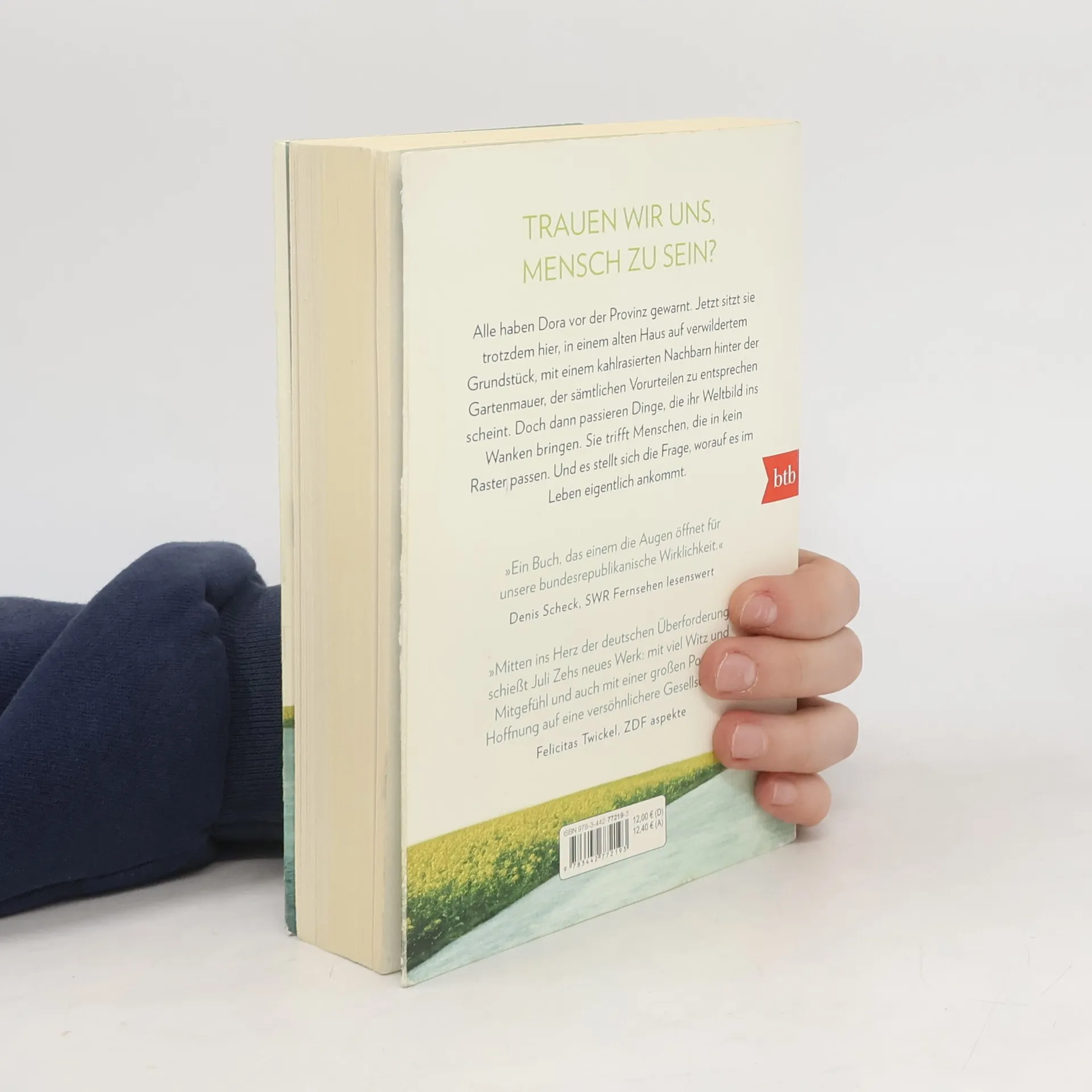 Trauen wir uns, Mensch zu sein? Dora ist mit ihrer kleinen Hündin aufs Land gezogen. Sie musste dringend raus aus der Stadt, auch wenn sie nicht genau weiß, wovor sie auf der Flucht ist. Großstadt, Lockdown, stressiger Job, ein übereifriger Freund, dazu Donald Trump, Brexit und Rechtspopulismus – wann ist die Welt eigentlich dermaßen durcheinandergeraten? Dass Bracken, dieses kleine Dorf im brandenburgischen Nirgendwo, nicht die ländliche Idylle ist, von der manche Städter träumen, war Dora klar. Alle haben sie vor der Provinz gewarnt. Jetzt sitzt sie trotzdem hier, in einem alten Haus auf einem verwilderten Grundstück, mit einem kahlrasierten Nachbarn hinter der Gartenmauer, der sämtlichen Vorurteilen zu entsprechen scheint. Doch dann passieren Dinge, die ihr Weltbild ins Wanken bringen. Sie trifft Menschen, die in kein Raster passen, und steht vor einer Herausforderung, die Antwort auf die große Frage verlangt, worauf es im Leben eigentlich ankommt. Juli Zehs neuer großer Roman erzählt von unserer unmittelbaren Gegenwart und den Menschen, die sie hervorbringt. Von ihren Befangenheiten, Schwächen und Ängsten. Und von ihren Stärken, die zum Vorschein kommen, wenn sie sich trauen, Mensch zu sein.