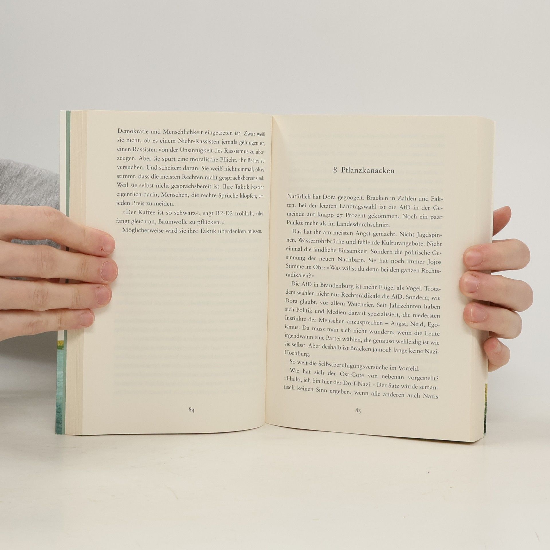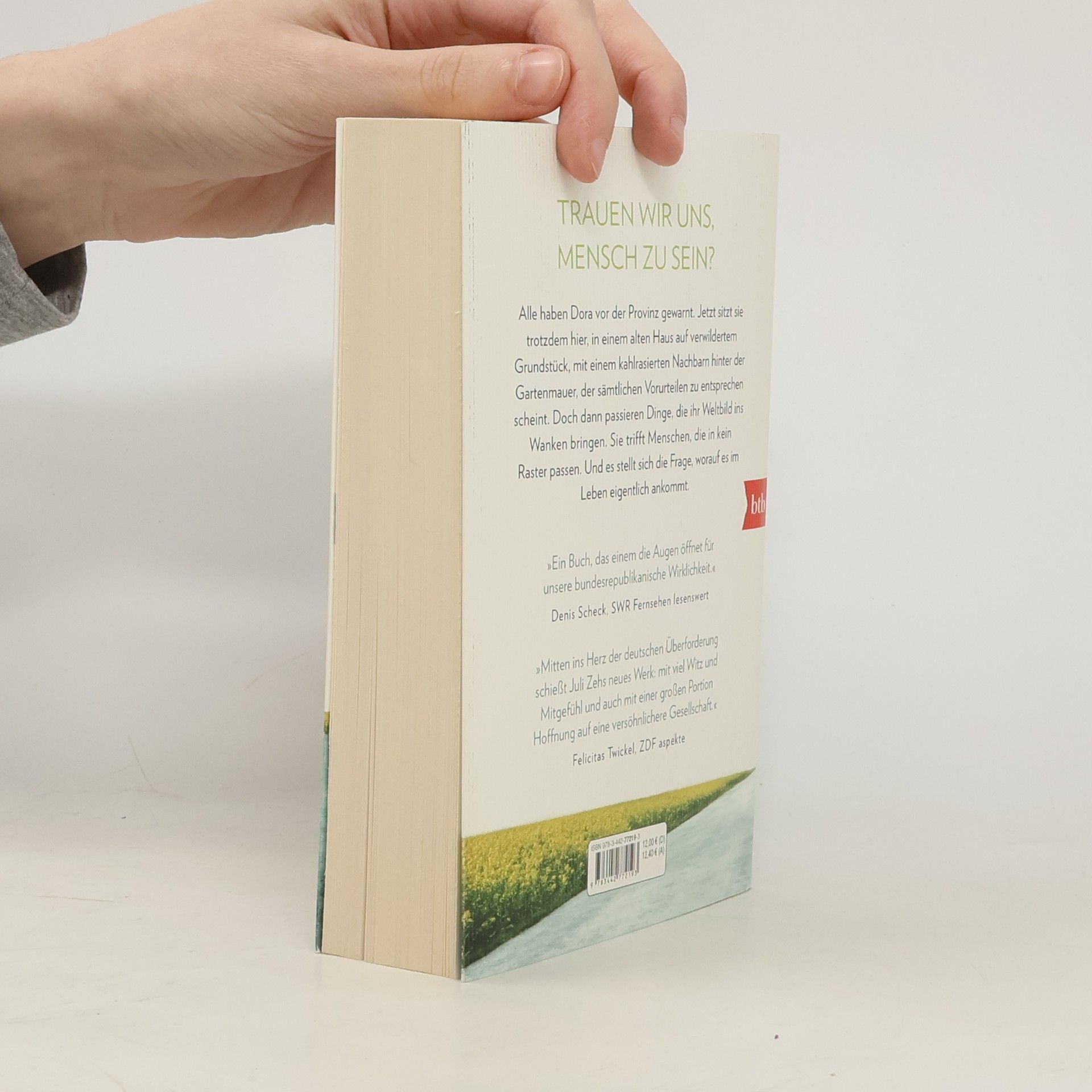 Trauen wir uns, Mensch zu sein? Dora ist mit ihrer kleinen Hündin aufs Land gezogen. Sie musste dringend raus aus der Stadt, auch wenn sie nicht genau weiß, wovor sie auf der Flucht ist. Großstadt, Lockdown, stressiger Job, ein übereifriger Freund, dazu Donald Trump, Brexit und Rechtspopulismus – wann ist die Welt eigentlich dermaßen durcheinandergeraten? Dass Bracken, dieses kleine Dorf im brandenburgischen Nirgendwo, nicht die ländliche Idylle ist, von der manche Städter träumen, war Dora klar. Alle haben sie vor der Provinz gewarnt. Jetzt sitzt sie trotzdem hier, in einem alten Haus auf einem verwilderten Grundstück, mit einem kahlrasierten Nachbarn hinter der Gartenmauer, der sämtlichen Vorurteilen zu entsprechen scheint. Doch dann passieren Dinge, die ihr Weltbild ins Wanken bringen. Sie trifft Menschen, die in kein Raster passen, und steht vor einer Herausforderung, die Antwort auf die große Frage verlangt, worauf es im Leben eigentlich ankommt. Juli Zehs neuer großer Roman erzählt von unserer unmittelbaren Gegenwart und den Menschen, die sie hervorbringt. Von ihren Befangenheiten, Schwächen und Ängsten. Und von ihren Stärken, die zum Vorschein kommen, wenn sie sich trauen, Mensch zu sein.