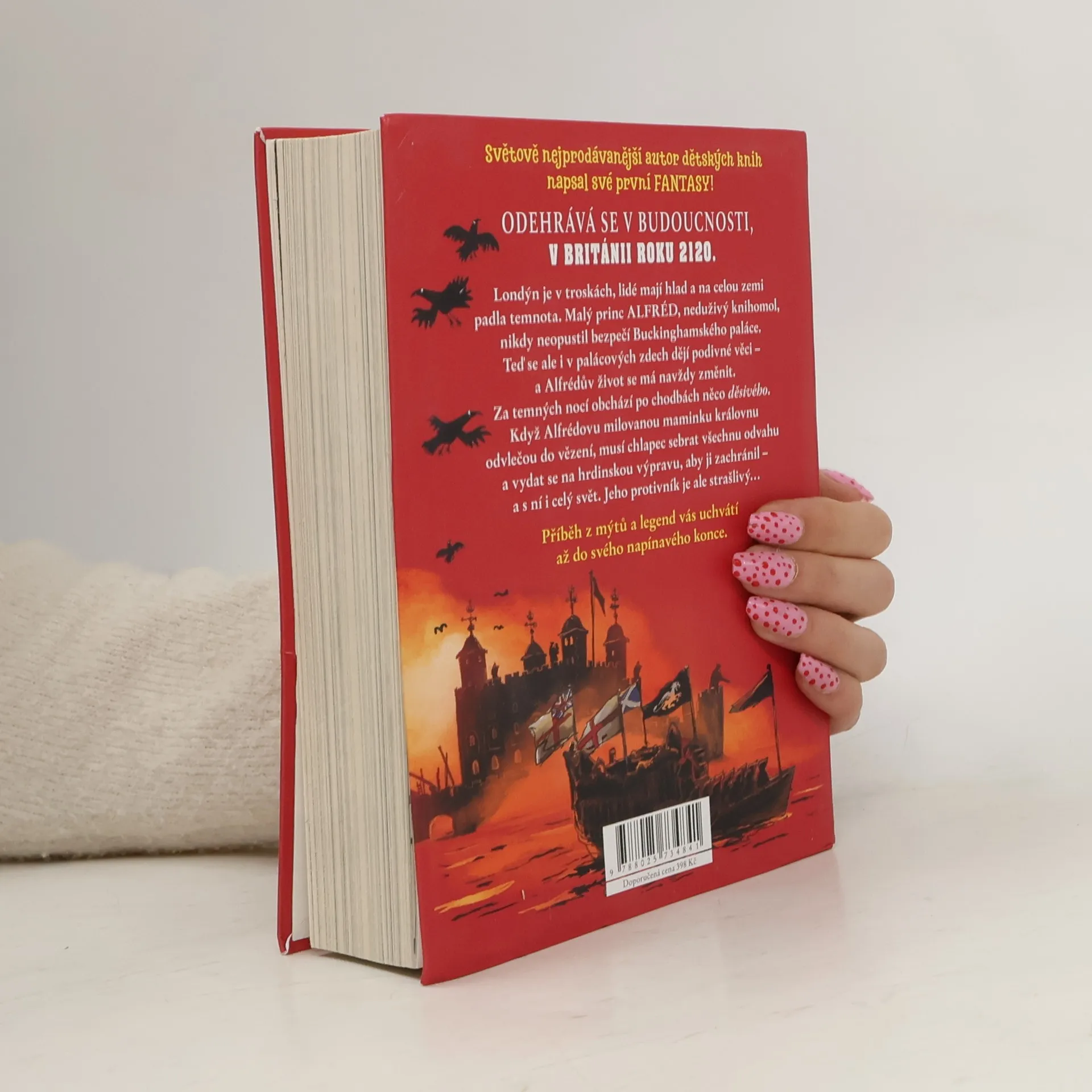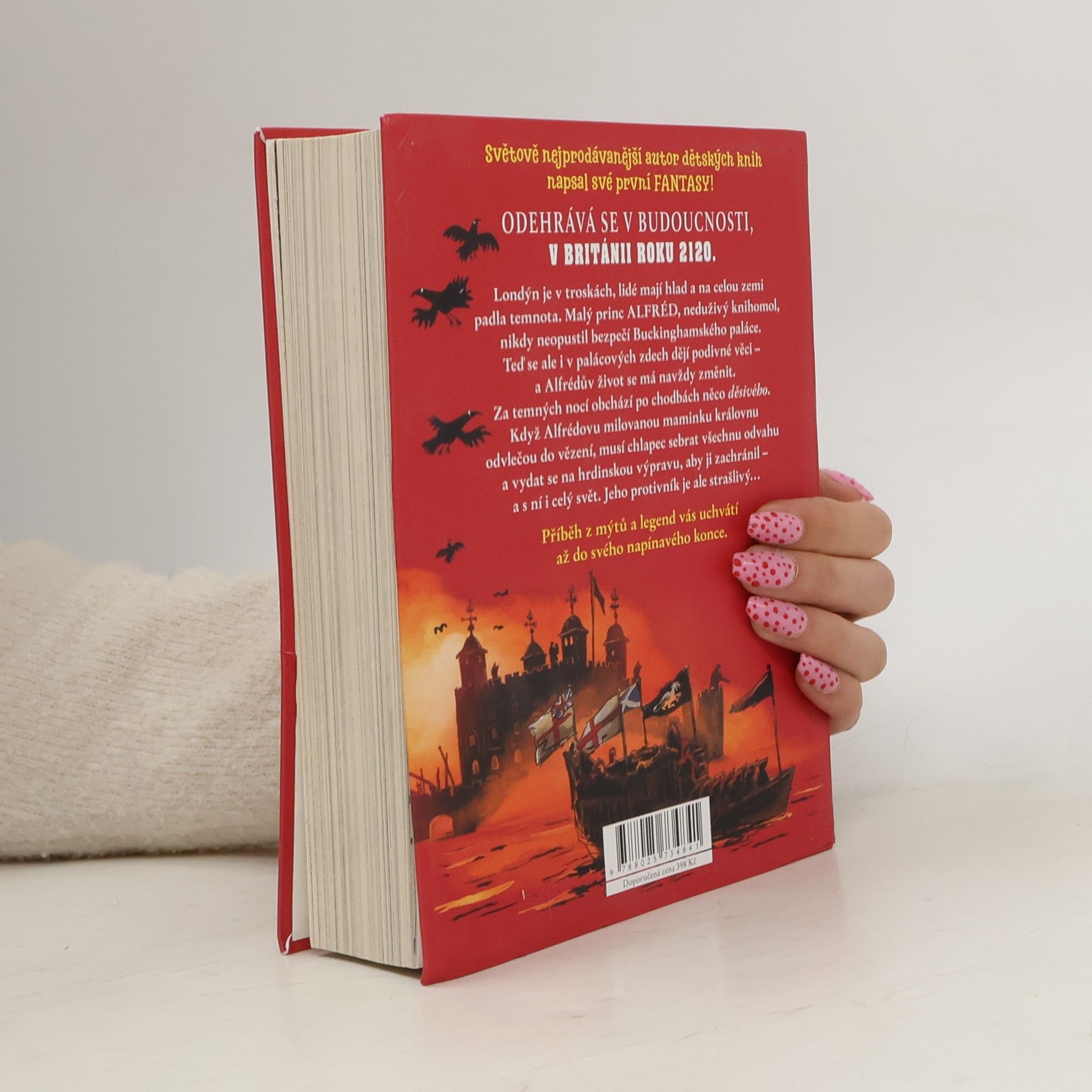 Světově nejprodávanější autor dětských knih napsal své první fantasy! Odehrává se v Británii o sto let později, tedy v roce 2120. Londýn je v troskách, lidé mají hlad a na celou zemi padla temnota. Malý princ Alfréd, neduživý knihomol, nikdy neopustil bezpečí Buckinghamského paláce. Teď se ale i v palácových zdech dějí podivné věci - a Alfrédův život se má navždy změnit. Za temných nocí obchází po chodbách něco strašlivého. Když Alfrédovu milovanou maminku královnu odvlečou do Toweru, musí chlapec sebrat všechnu odvahu a vydat se na hrdinskou výpravu, aby ji zachránil - a s ní i celý svět. Jeho protivník je ale strašlivý. Příběh z mýtů a legend vás uchvátí až do svého napínavého konce. . Knihu opět ilustroval báječný Tony Ross.