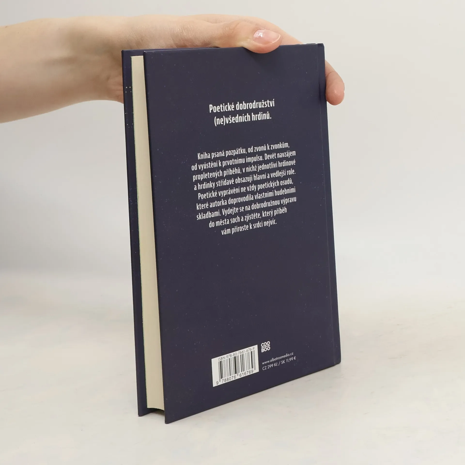 Kniha psaná pozpátku, od zvonů k zvonkům, od vyústění k prvotnímu impulsu. Devět navzájem propletených příběhů, v nichž jednotliví hrdinové a hrdinky střídavě obsazují hlavní a vedlejší role. Poetické vyprávění ne vždy poetických osudů, které autorka doprovodila vlastními hudebními skladbami. Vydejte se na dobrodružnou výpravu do města soch a zjistěte, který příběh vám přiroste k srdci nejvíc.