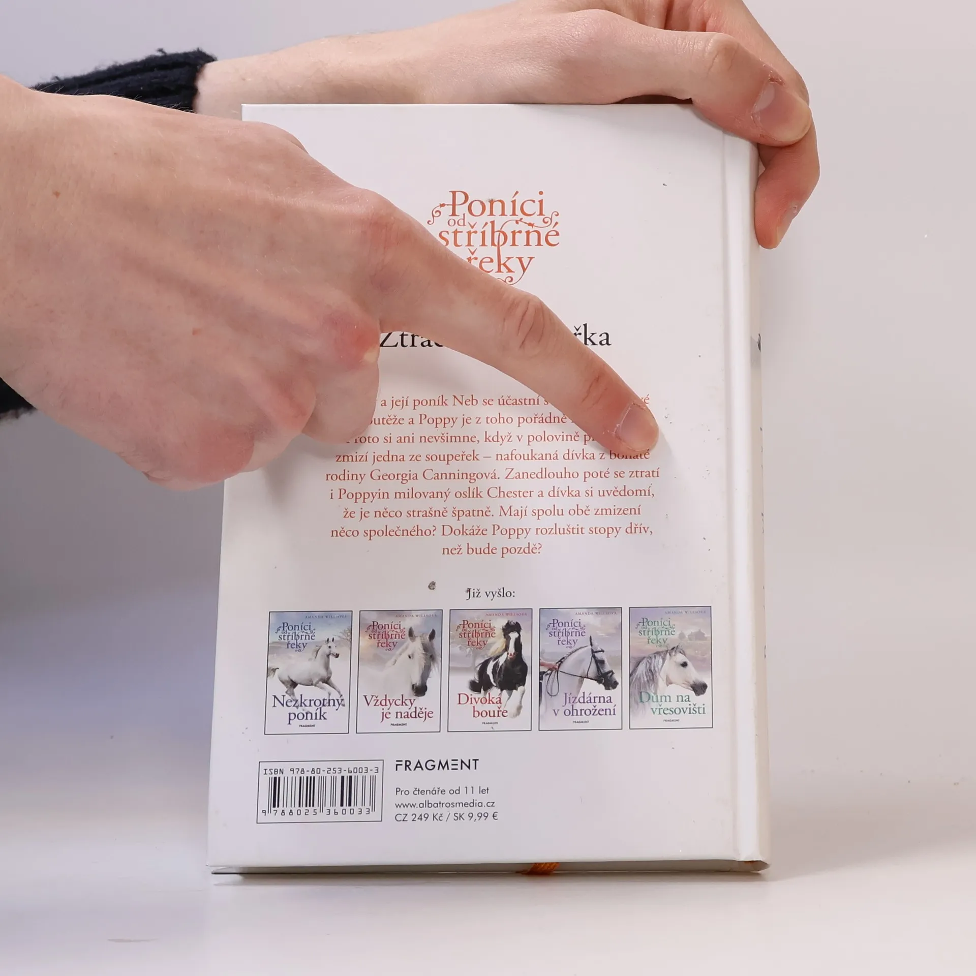 Divocí poníci, dobrodružství, kamarádství a emoce v 6. dílu série pro milovnice koní a poníků. Poppy a její poník Neb se účastní své první skokové soutěže a Poppy je z toho pořádně nervózní. Proto si ani nevšimne, když v polovině přehlídky zmizí jedna ze soupeřek – nafoukaná dívka z bohaté rodiny Georgia Canningová. Zanedlouho poté se ztratí i Poppyin milovaný oslík Chester a dívka si uvědomí, že je něco strašně špatně. Mají spolu obě zmizení něco společného? Dokáže Poppy rozluštit stopy dřív, než bude pozdě?